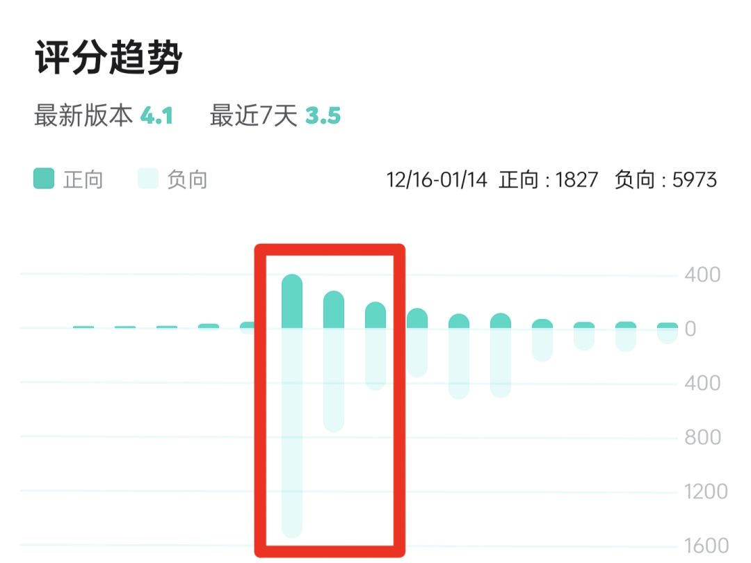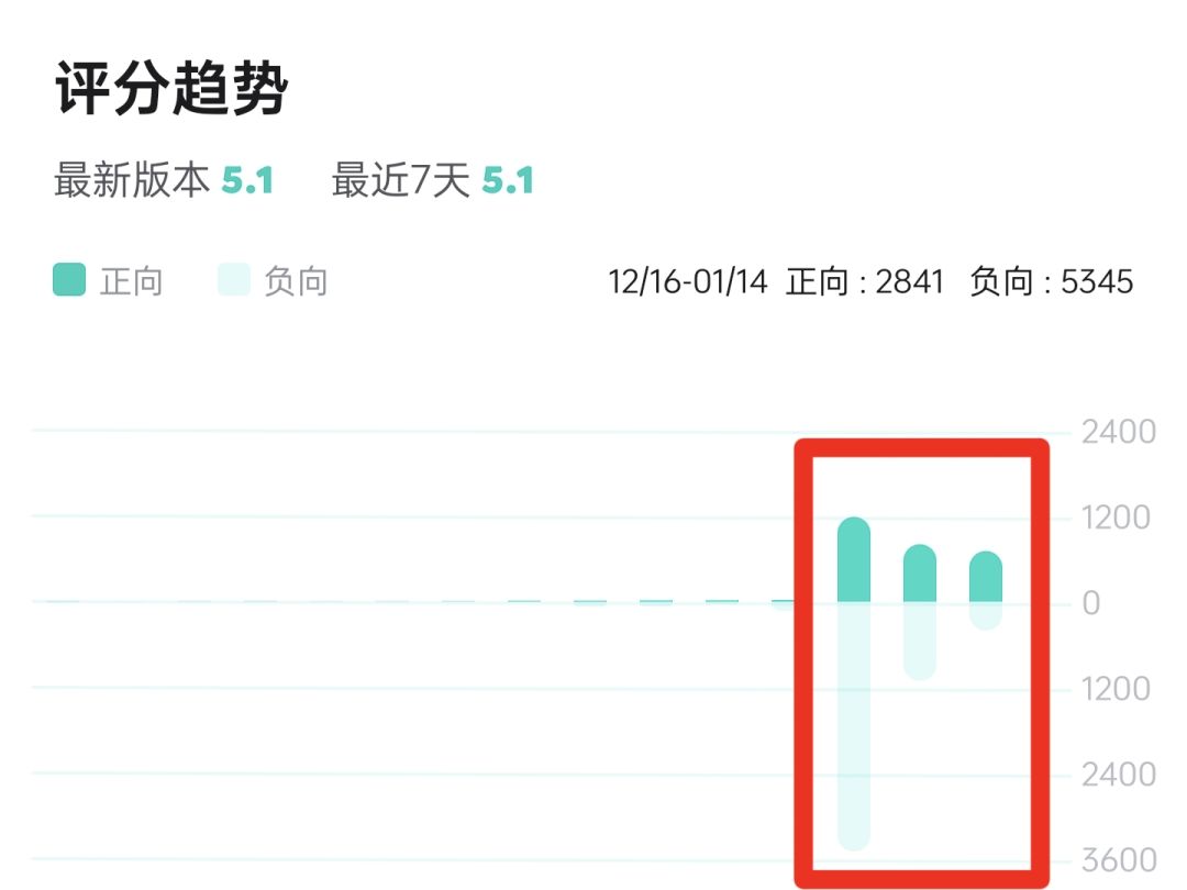 最后讲个预测吧,考虑到TapTap的评分机制,目前与少前2同分段的白荆,评分在人流散去之后,一周内应该会得到显著的回升到6分左右(1月18日公测一周评分已达5.9),而在1月14日运营终于梦醒介入释放50抽福利之后,假使后续的第一个大版本更新不出问题,我甚至有预期届时它可能摸到7分的门槛。附图是两款游戏的前三天评分趋势,差异还是很明显的。