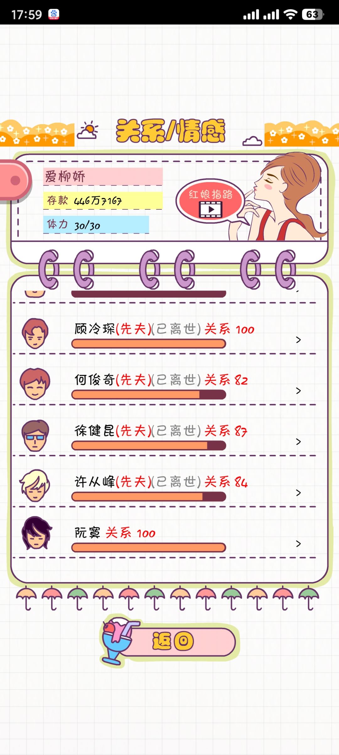 我第三次玩,熬死了四任丈夫,没攻略朋友闺蜜是因为前几次攻略了,送的健身卡美容卡什么,感觉有别的可以弄。