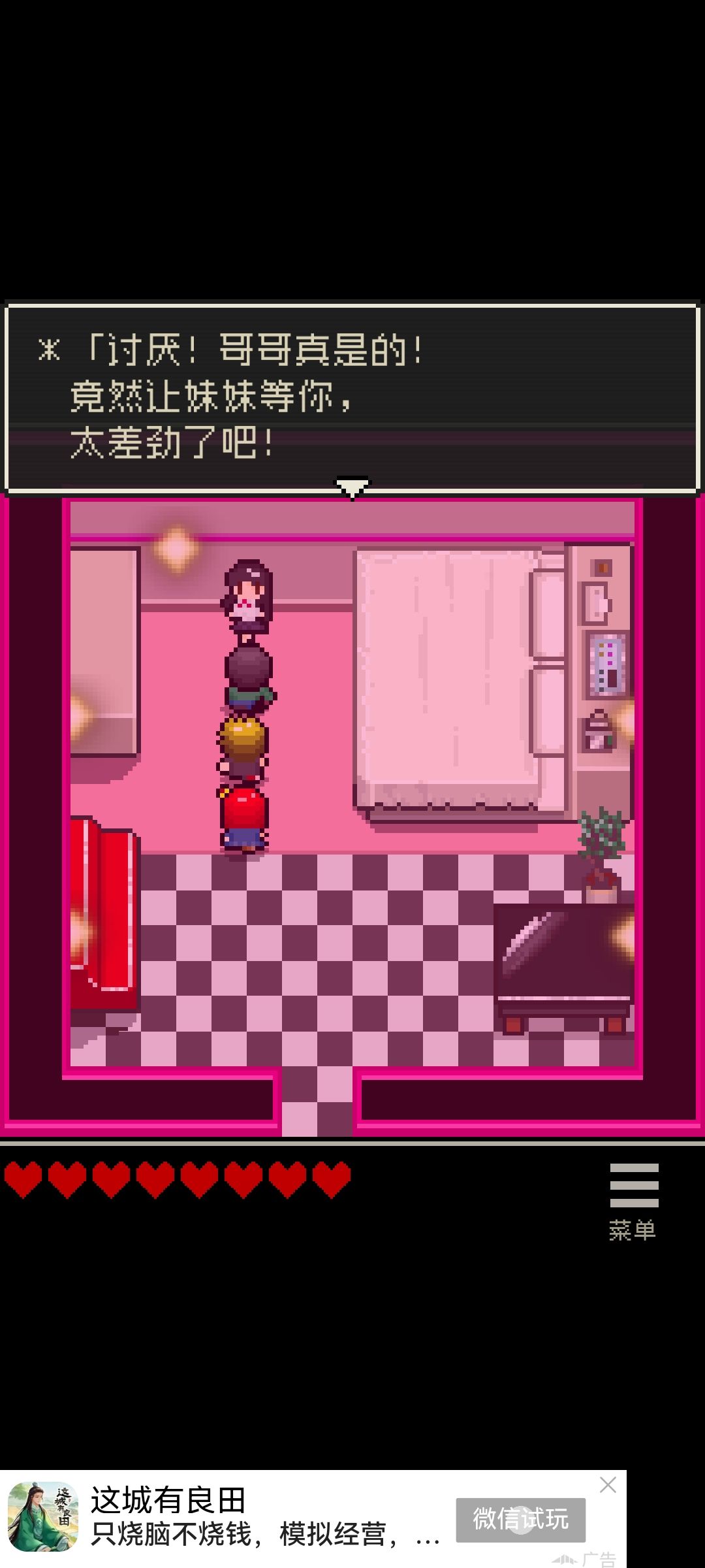 虽然在AIGC渐长枝叶的年代,画面上看似处于劣势。但通过像素小人夸张的动作,恰到好处的BGM和文字情绪符号的泛用,对于心思细腻的剧情向玩家来说,情感的表现力相比立绘+文本框的大多数手游处理是强出太多。