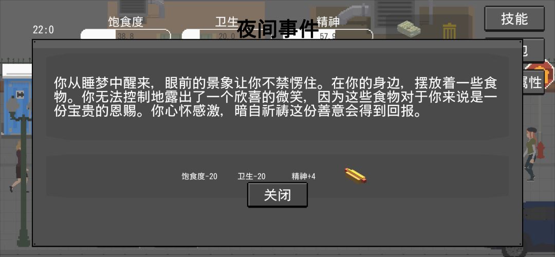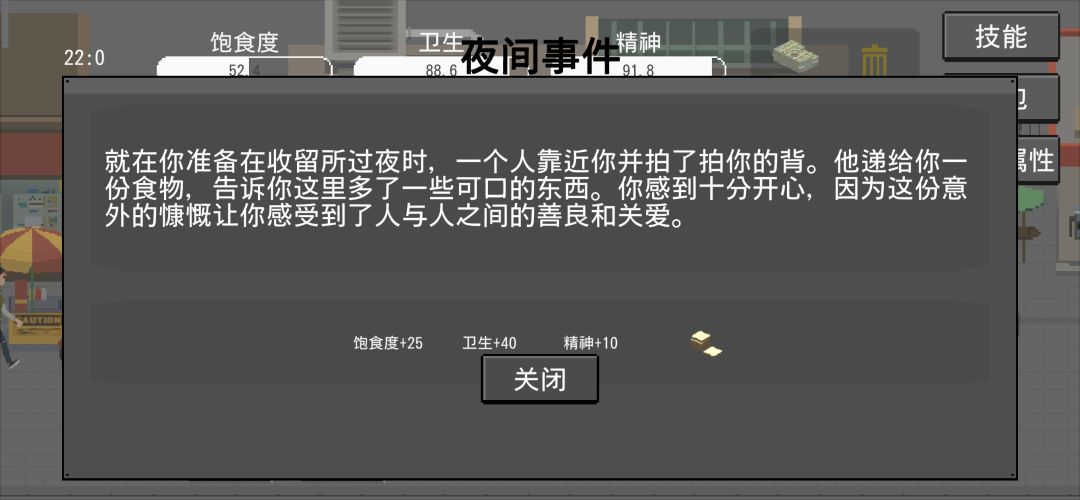 我是捡垃圾流扫地机器人,叠垃圾食物耐性,翻垃圾就能解决饱食度,精神靠间歇小酌,小有资产的话进旅馆不在收容所(虽然游戏里经历的都是友善,但看过对国外流浪者的采访比较感慨忌惮)。感觉可以加上可以主动互动的其他流浪者,抢着垃圾,报团取暖/抢夺暗算,交易氵酉和火因。佩服6天通关的游友。愿世界尽可能多的人民早日实现自由而全面的发展。