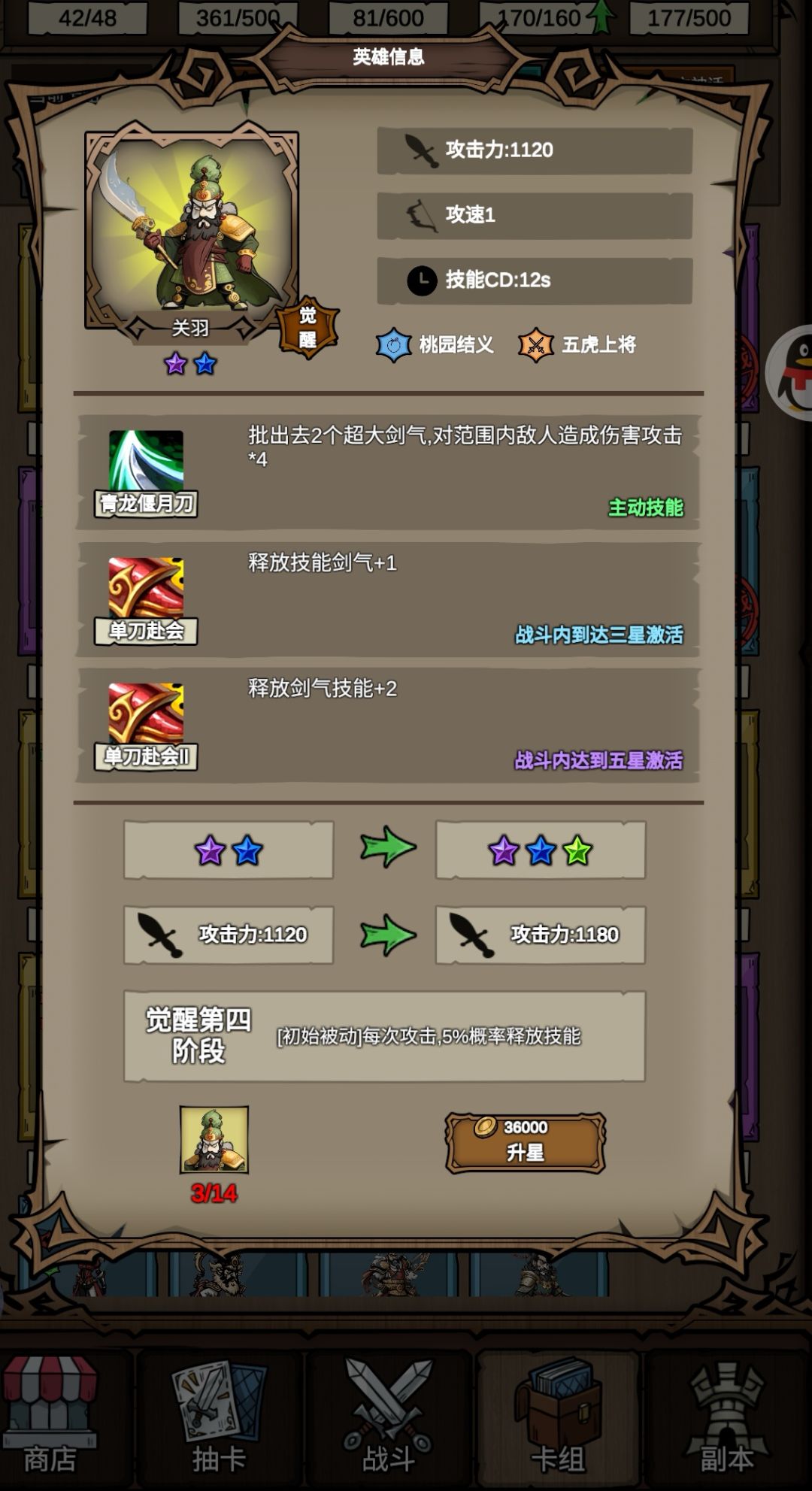 这个游戏一个是局外养成,大佬不提,平民的话就慢慢养了,当然局外星级越高局内肯定伤害更高,不管什么阵容吧,想要玩好还是真挺难的,卡牌的羁绊跟怎么出场的顺序搭配,还有无尽模式三选一的天赋,还是需要多了解才能吃透,ps:这游戏福利非常好,推关卡和任务奖励给的奖励非常多,0氪一天下来都能7-800抽。