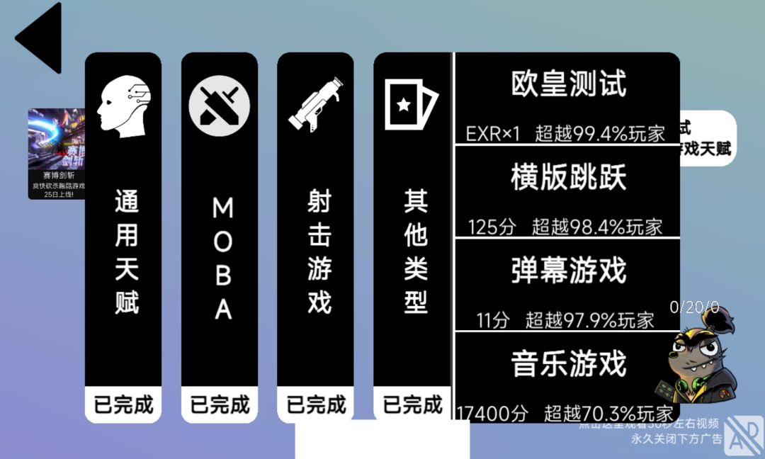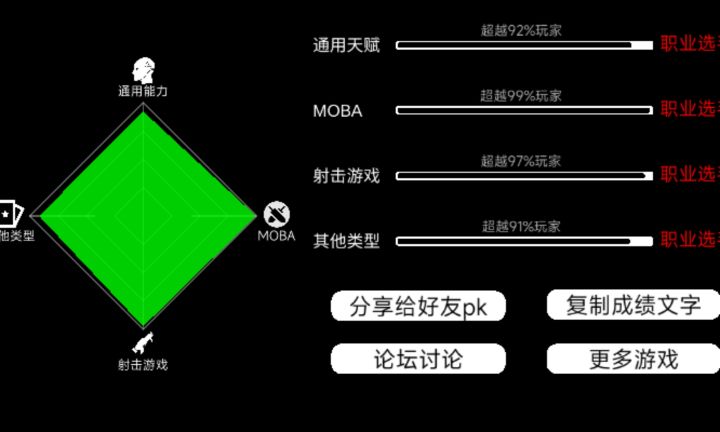 🌃画面音乐:真的还不错了,毕竟这游戏核心是测试,画面和音乐本身不是特别重要,但是这游戏像欧皇测试里各等级卡片上二次元小人、MOBA类测试角色和场景的建模刻画的都比较精美;音乐不像画面那么好,不过音游测试里那个曲子说实话我还比较喜欢的