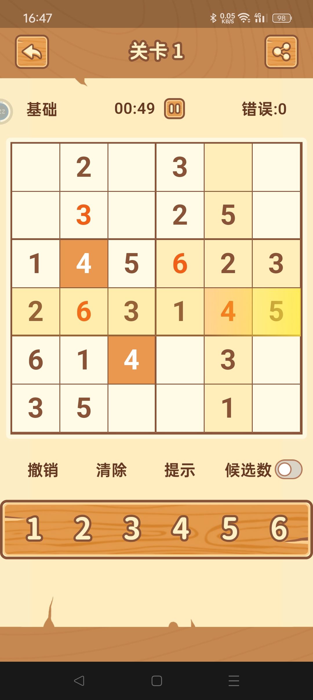 我从来没玩过数独,这个游戏教会了我。里面有新手教程,就是猜数字,1234、123456、.......这个数字每行、每列只能存在一个。更复杂的宫就是一块区域里所有数字也不能存在相同。通过补全这个容易发现的数字,就能接着去补全下个数字。游戏非常益智,适合锻炼思维能力。非常上瘾,还没有任何广告。不错不错!试试就知道了,新手还是像我一样选入门四宫格和基础六宫格比较简单。