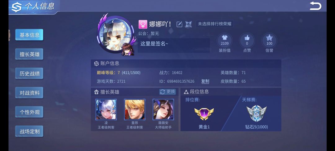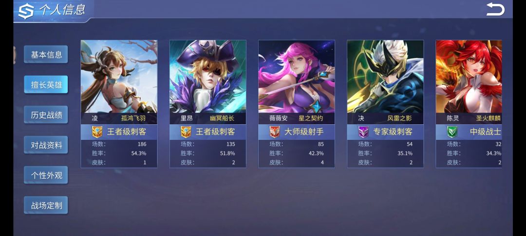 现在也记不清当时凌是什么时候出的了,我只记得出的时候好像是要集碎片多少个才能换这个英雄的,我好像还花了十几块去补碎片了😂因为当时真的很喜欢这个英雄也是第一个打到王者熟练度的英雄。但其实这俩王者熟练度的英雄应该都玩了快五百场了,当时我都打到了国服榜的(应该可以这么说吧,毕竟我记得是按照熟练度高低排的,我也打到了一百多名),但是后来我退游了一会,以及榜单刷新了,就只有这么点数据了。