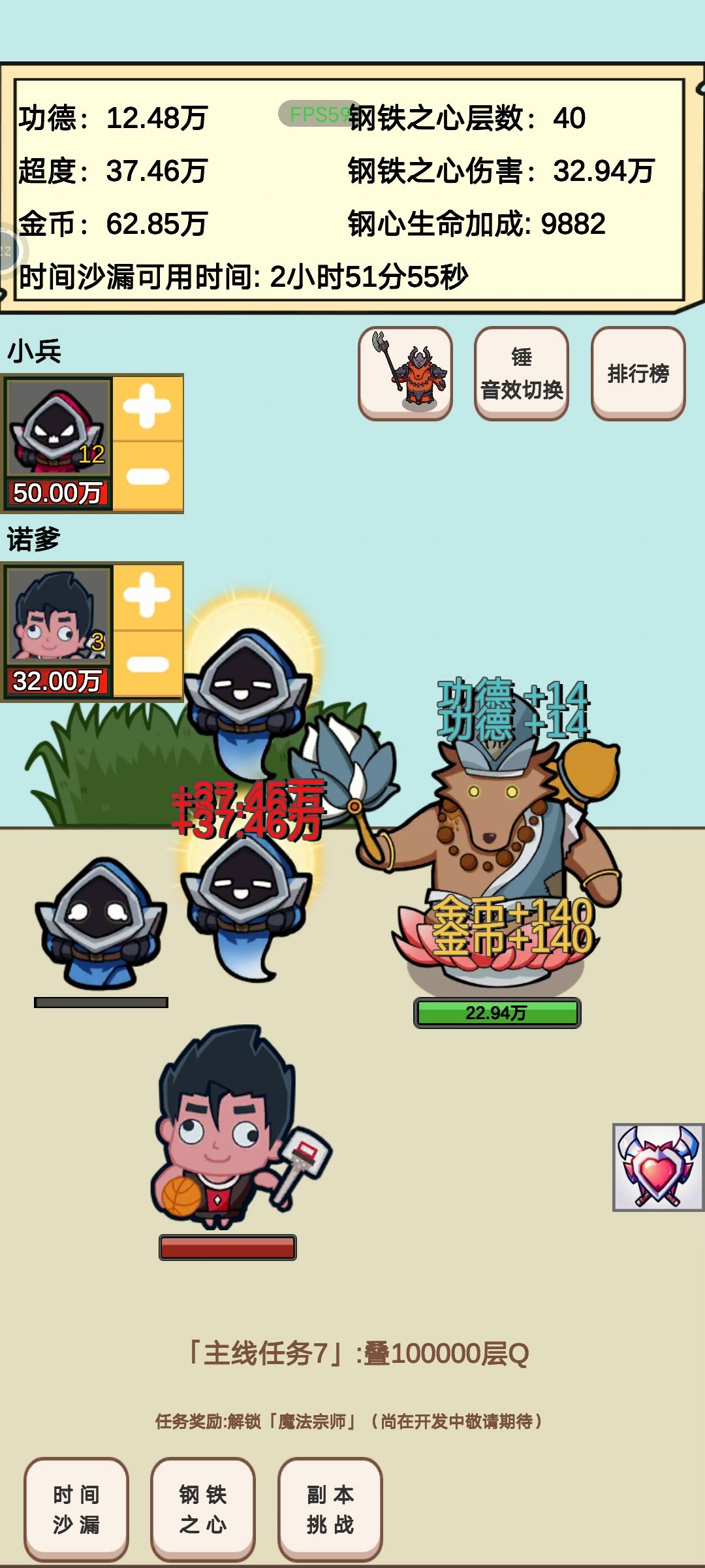 经典“电子木鱼”玩法并缝合衔接了轻微数值养成+放置挂机,主打一个叠Q积累伤害,通过控制小兵及宿敌“灌篮高手”诺克斯的等级,来获得更大收益,贴近LOL现状!