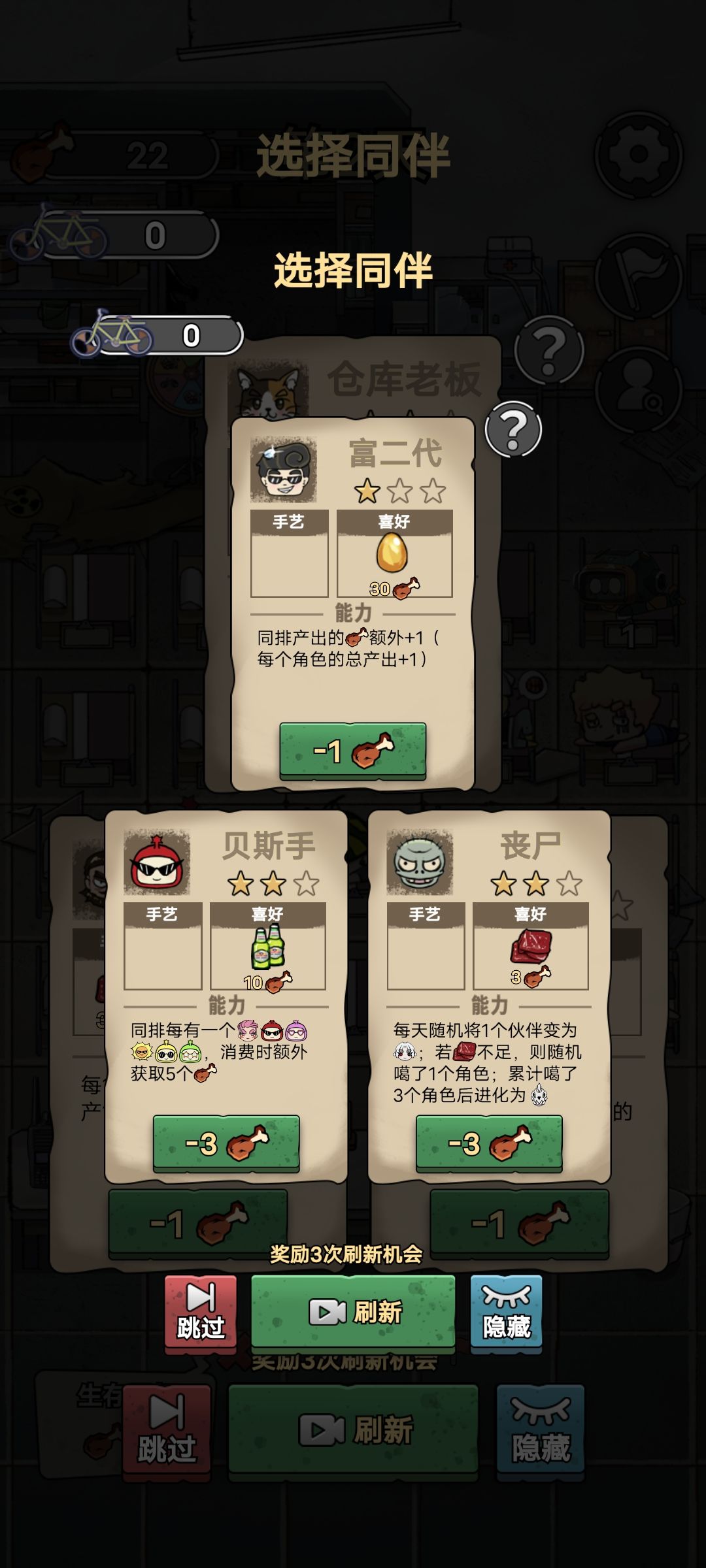 即为丧尸,要么吃肉,要么随机消除卡牌,选择路人等亦或是养殖场老板