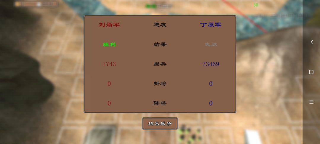 这游戏太简单了,不需要看广告就通了,找些智力高的武将,打仗的时候虚兵定住,能放计策就放计策,计策不耗粮,注意地形,笼络是必成功的。培养一个武将也很好培养,结婚,培养武将的另一半挑衅送死,在结婚,再送,再结。属性这不就高起来了吗😁赚钱:一直单挑,把人劝降,波她装备,送回去。装备便宜的有500一件。不想要的武将10体力去送,留着也是浪费钱。前期做内政基本都是入不敷出。不用的武将把兵全卸下来,裁了。