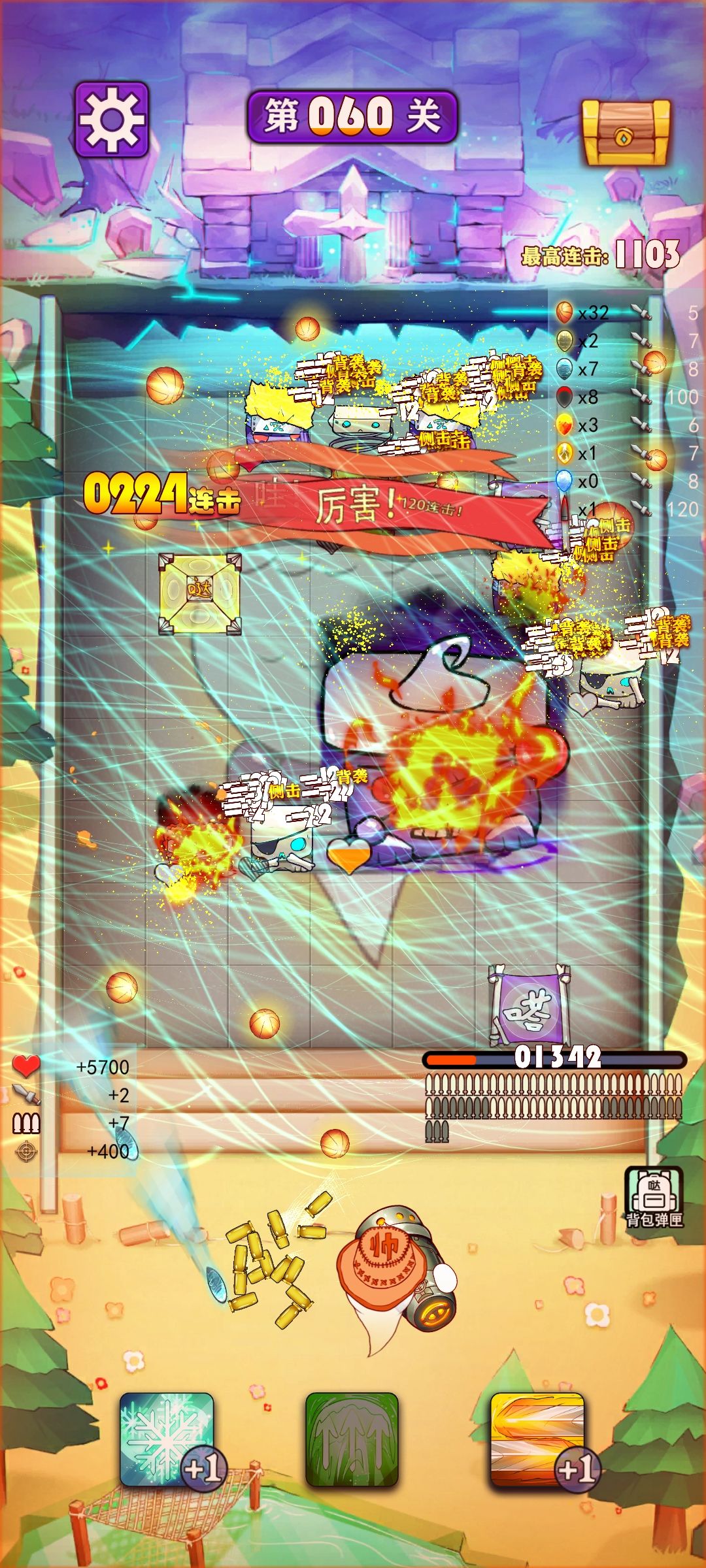 核心在肉鸽养成,利用道具+养成资源,体验弹弹乐的割草解压,关键在选择发射角度,让子弹在“怪物与墙壁”间反复弹射,也可利buff建筑分裂子弹,场面效果解压感拉满!