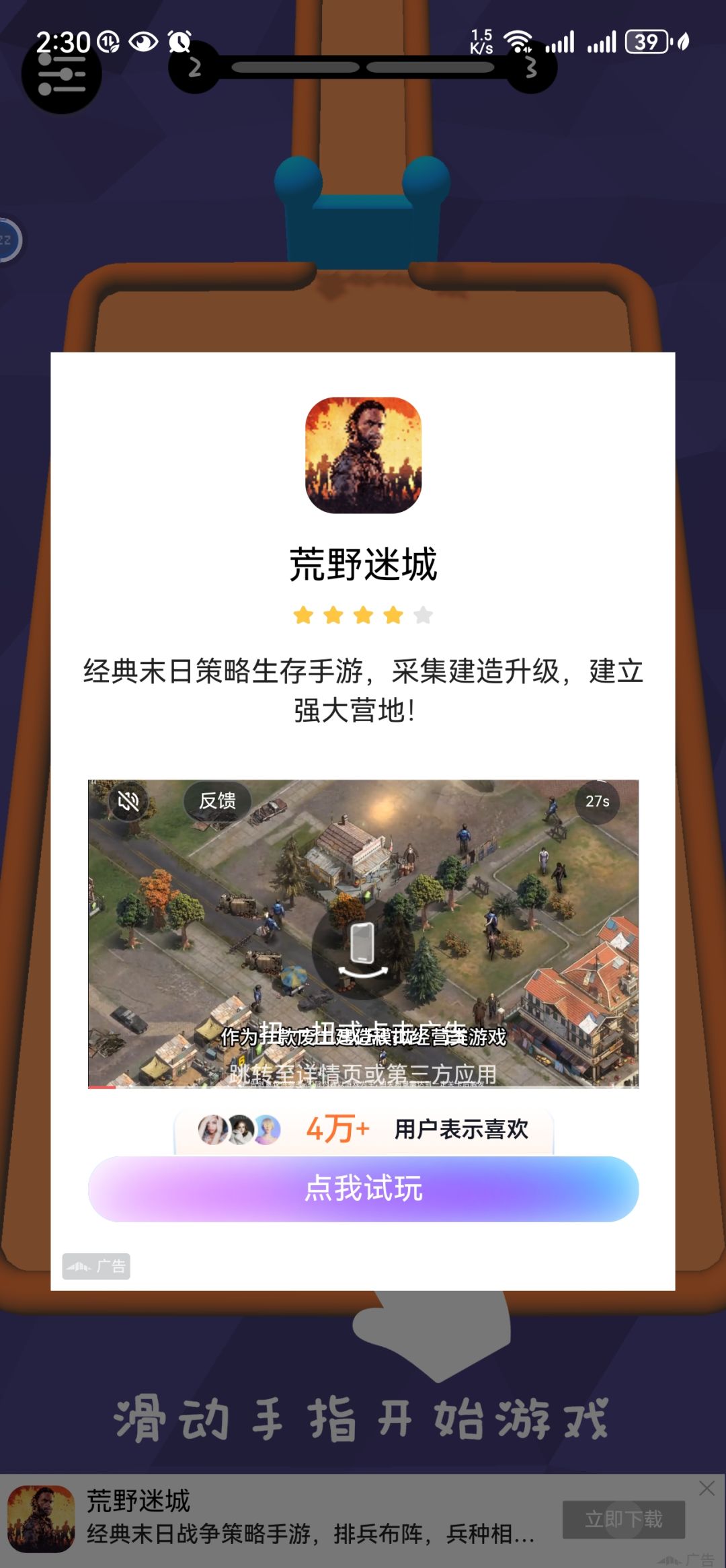 我可以接受游戏买断,内购付费。自愿看广告换道具。但是强制广告吃相难看的一律差评一星。音效是网上很常见的素材,玩法是黑洞吞噬的阉割版换皮毫无新意。唯一的亮点就是关不掉的广告。说真的,玩这么多年游戏,第一次玩到打完就强制广告,不点广告就关不掉只能强制退后台的。说广告可以关的,截图在这,自己看看在哪里关,在哪里跳过。