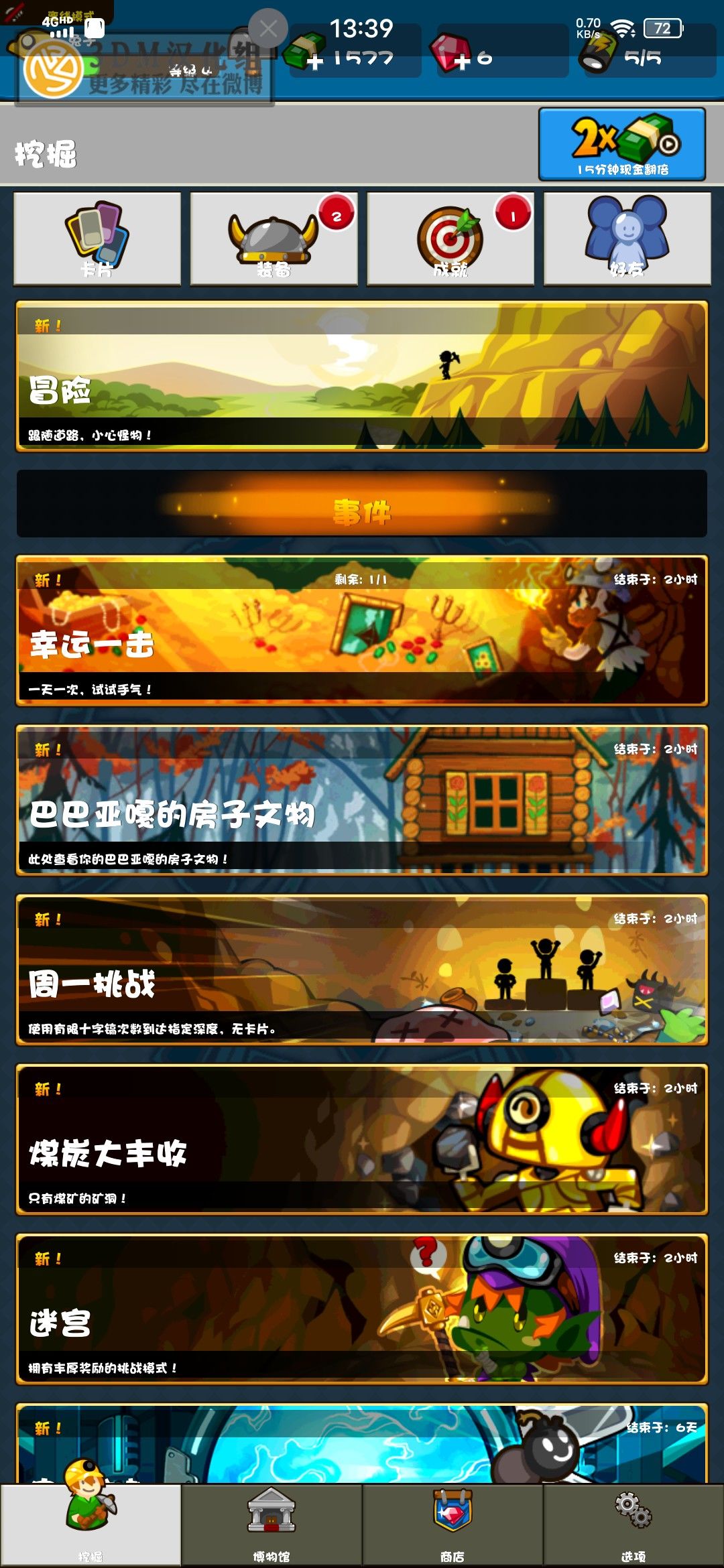 不太好玩,挖矿不是自由的,说白了就是点砖块就敲掉,每关不用一分钟就打完了,很短,卡片就是一些每关遇到炸弹等等东西概率的加成,比一般的挖矿游戏还要无聊,挖的煤矿铁矿没意义,其他挖矿游戏起码还可以说挖矿赚钱然后升级属性,这游戏是压根没这方面的感觉,就是点几下一关点几下一关