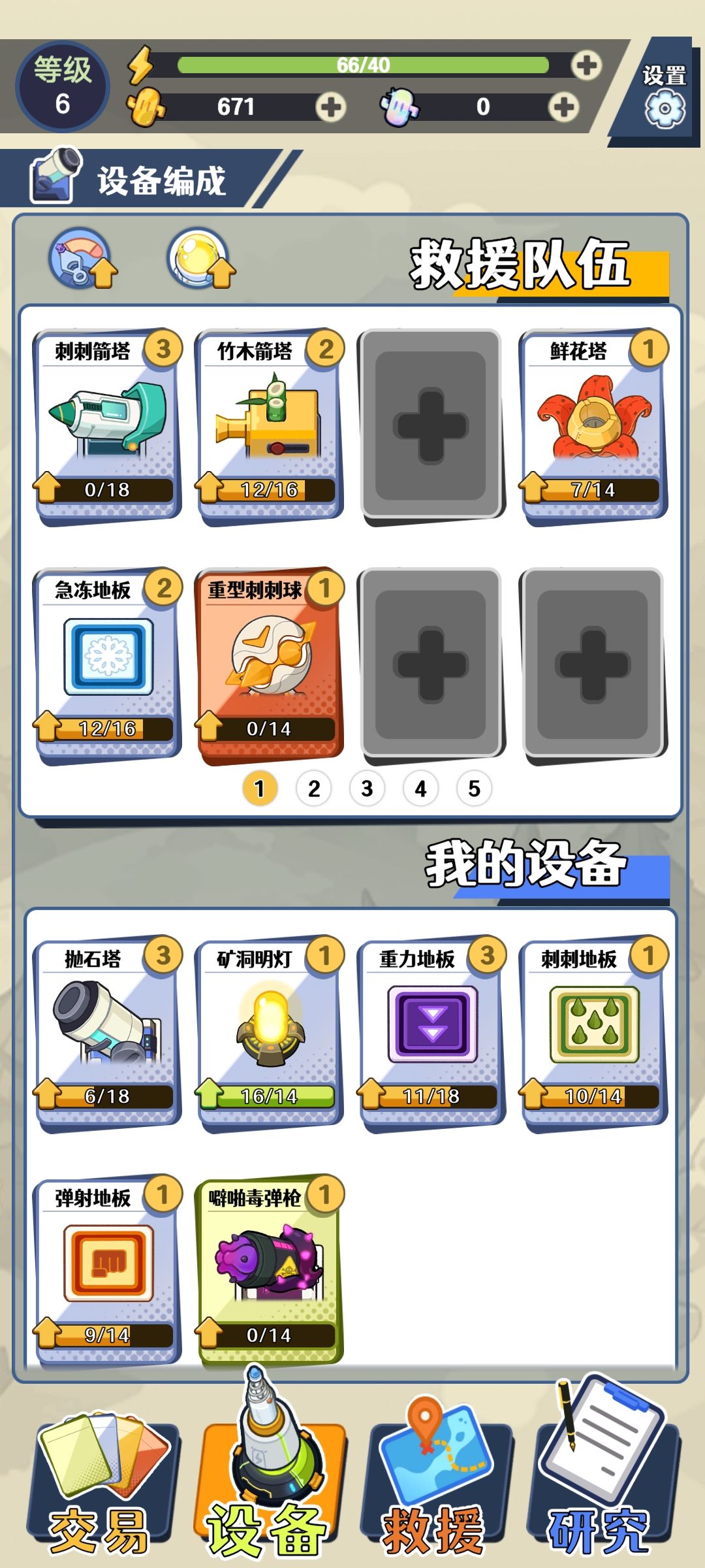 每场可携带8个设施卡牌,消耗金币从牌库中抽取,桌面最多暂存五张,相同卡牌可直接合成升星。