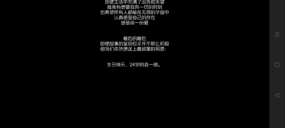 刚开始点进去的时候看到宇宙诗人的宇航服真的有被可爱到,而且我很喜欢浇花(疯狂点),开开心心玩着玩着突然就被刀了hhhhh看到最后回溯过去的时候,霍许的身边空无一人,从未想过有天能被像素小游戏刀哭,我估摸还在被昨天的事影响,看到这些话这些歌词就有点泪目sos总体来说这是一个很棒的故事!也希望我们琦琦接下来的每一天每一月每一年都顺顺利利,做最特别的袁一琦,生日快乐!