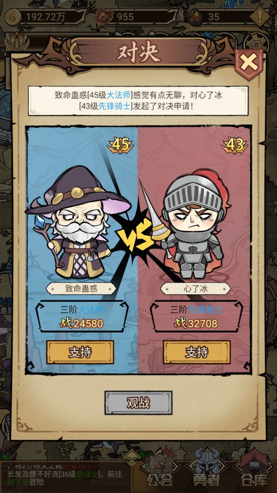 勇者们自身拥有些比较搞怪的词条,本身无需精准化操作,只需要点几个分配选项,其余他们就自动取购物/打怪/升级/转职等,本质就盯着左上角的实力+左下角的文本信息即可。