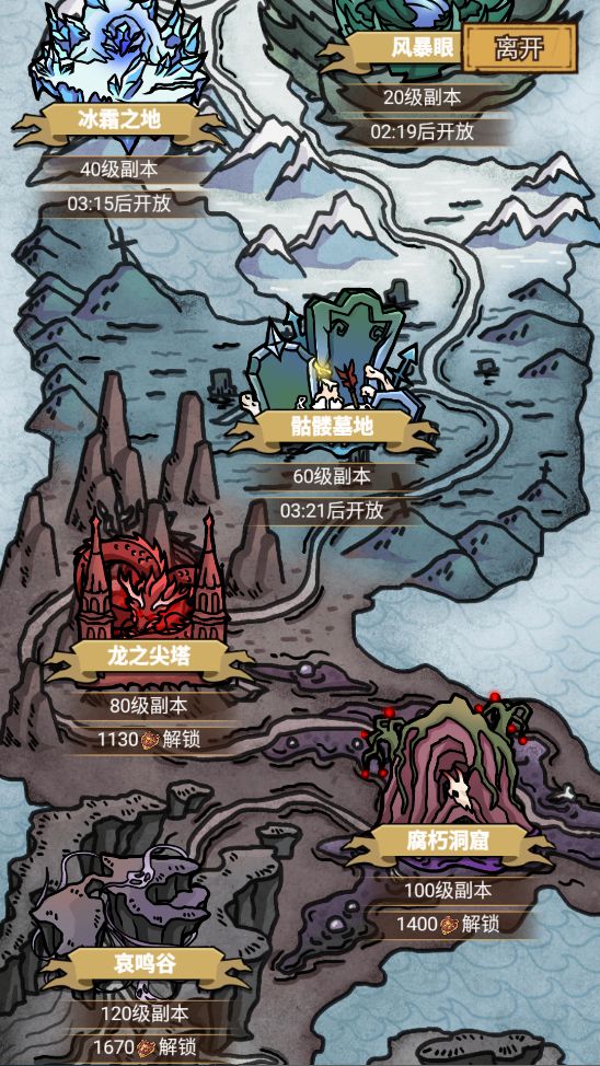 建造功能设施→招募勇者,佛系自动放置+定时副本点击参与,完成“成就任务”来解锁更多设施及功能,逐渐升级战力,升级工会召集更多勇者→更快完成“成就任务”