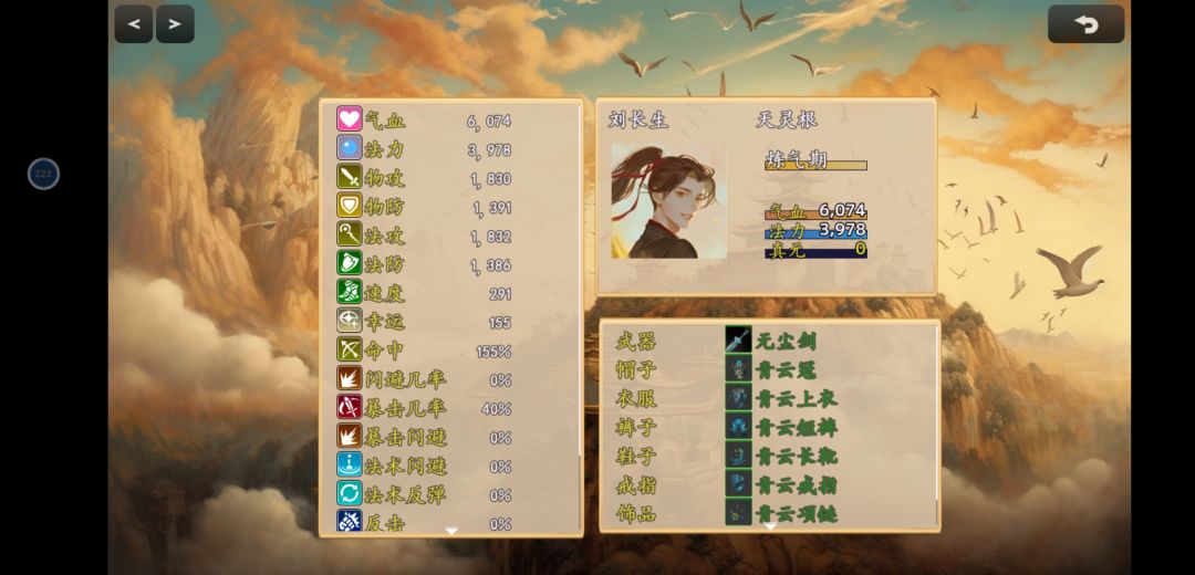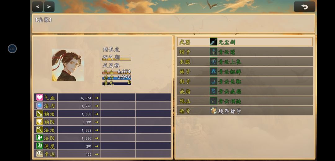 如图应该是所有内容都玩出来了,一身最贵的绿装,炼气期经验已满,各类一品丹药嗑满,开技能打二品妖兽出暴击就是一下捶死,不出暴击需要打两下。