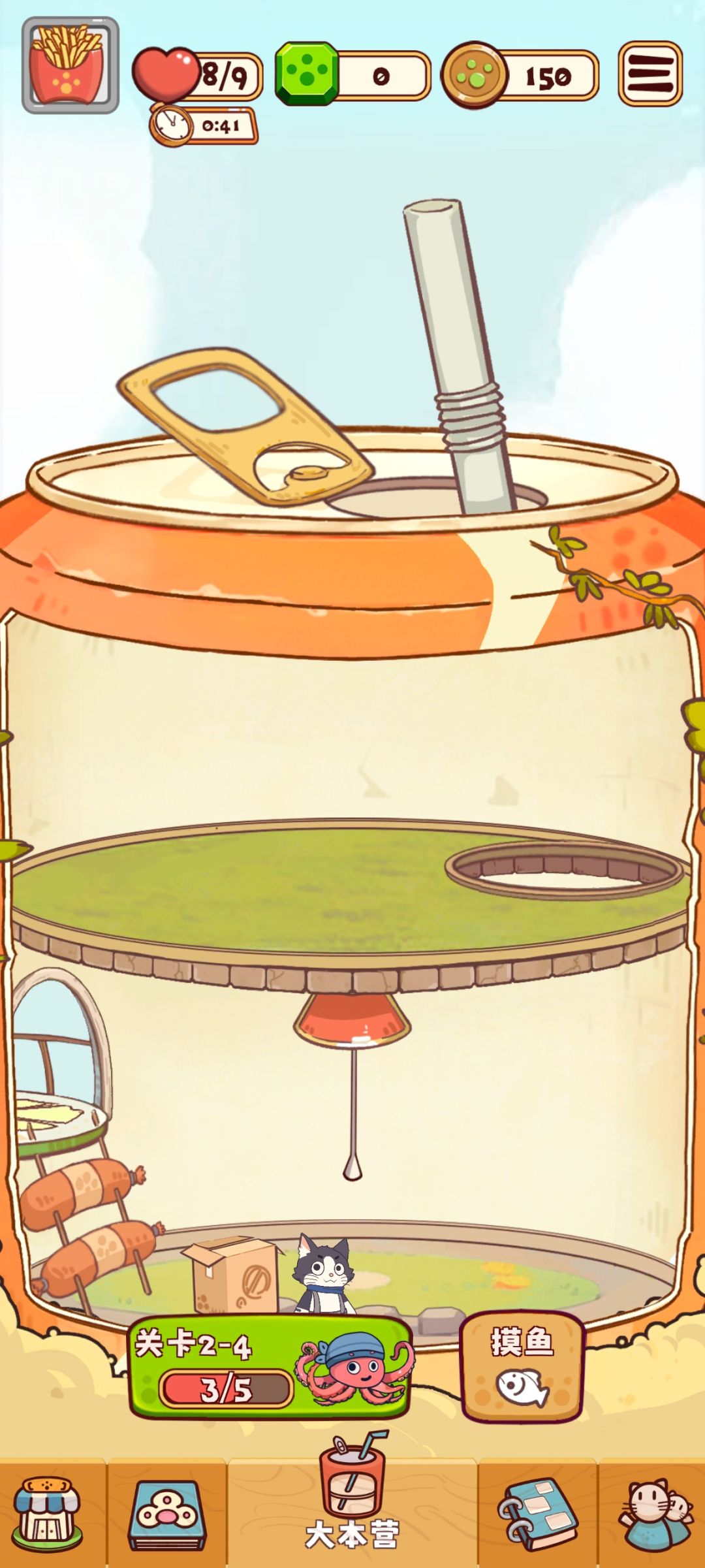适合消消乐党,不知道所谓的肉鸽是不是在关卡中遇到怪或者技能加点。最喜欢的是打章鱼巴掌的声音,谢谢,作为躺尸族觉得这个巴掌声有种干脆利落的痛快。打败怪物就有大鱼,打败它就是把小怪消除一下,难度不大,画风还行。我以为这个房子可以装修来着没发现能装修的地方。游戏没有什么氪金点,打发时间玩玩可以,五月份预计上线的话也快了。