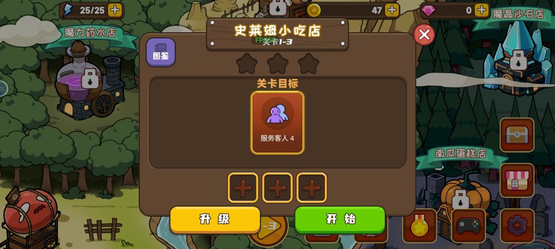玩起来还行有广告可以不看,个人感觉影响不大,就是玩的时间多少的问题游戏是按照关卡模式进行的,每个关卡难度递增【比如食材变多,顾客变多】制作材料需要手动点击补充【别忘了】开始游戏前左上角有图鉴可以看就是刷关赚钱,还行挺休闲的评论时只玩了1-3🙏