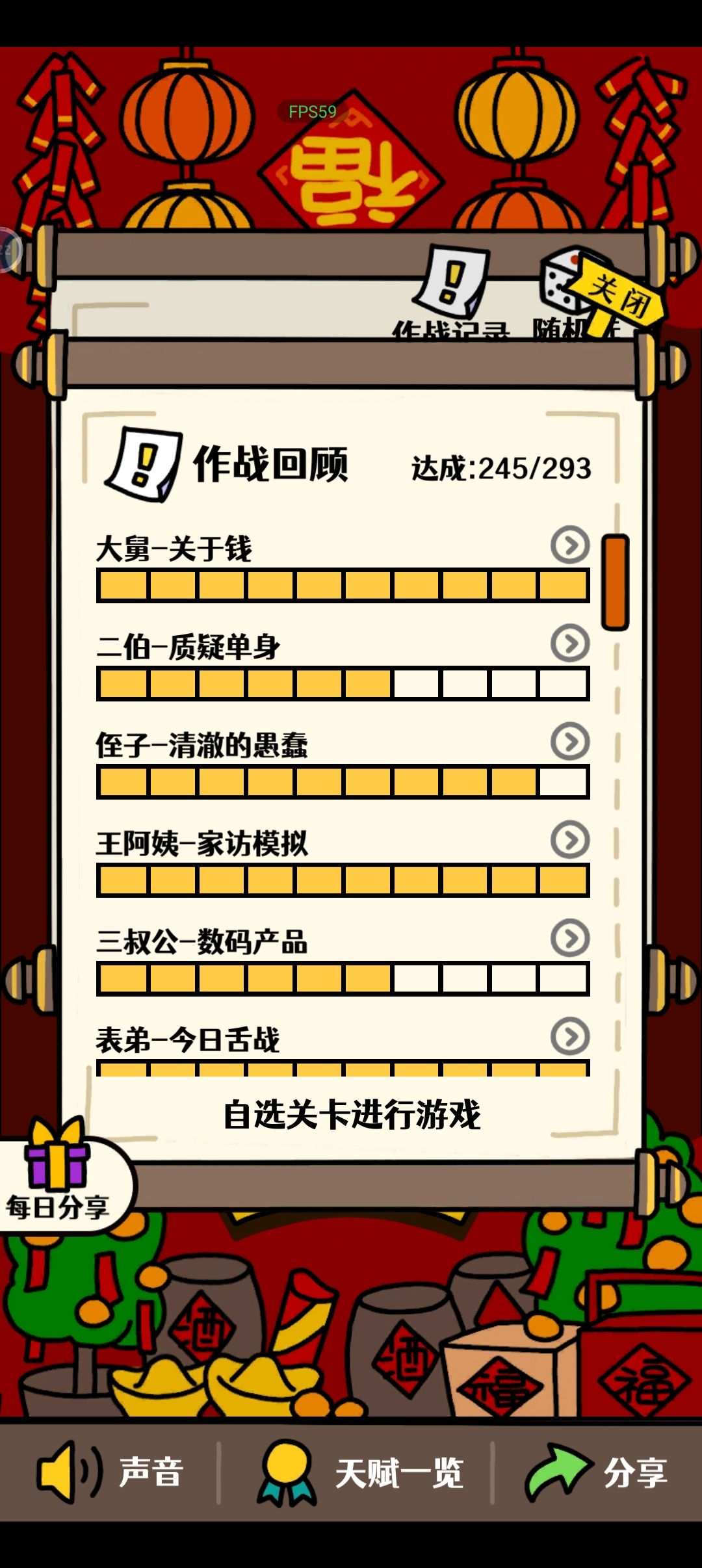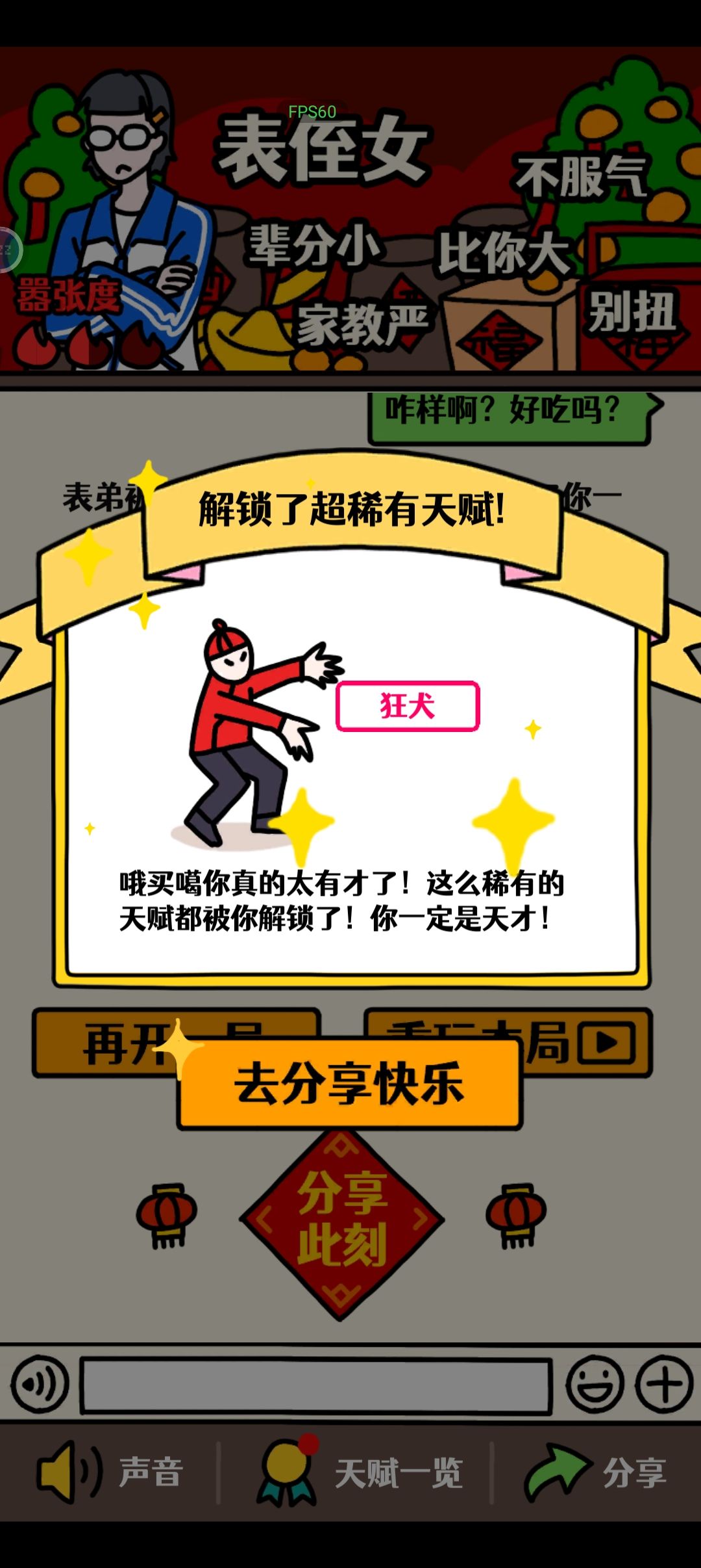 2.成就琴瑟和鸣,让舅妈制裁大舅10次,选择大舅剧本:关于钱→反将一军→叫大舅妈,重复10次就完成了,没必要去玩其他剧本浪费时间。