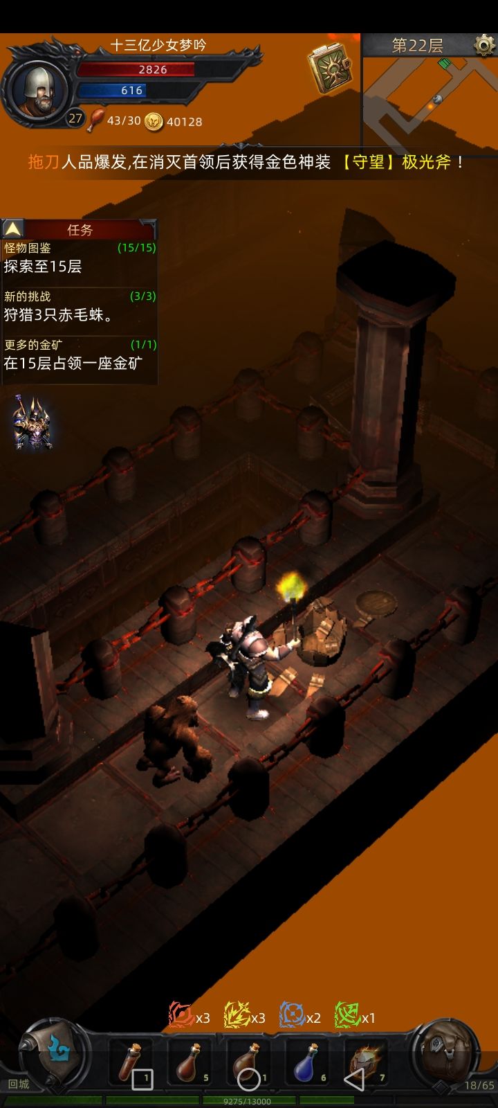 2:地图的设计,前19层可以通过又上角的地图精准的找到boos以及下一层的入口,而且还随机增加三个buff,三选一。但二十层之后地图就没有用了,因为地图改成不到达就不会显示。地图范围扩大的同时野怪分散在各个角落,需要一个一个的去找,途中的宝箱还能挡路,明明入口就在不远处还需要绕一大圈,极大的影响了刷怪的效率以及耐心,同时也增加了游戏的进度和寿命。