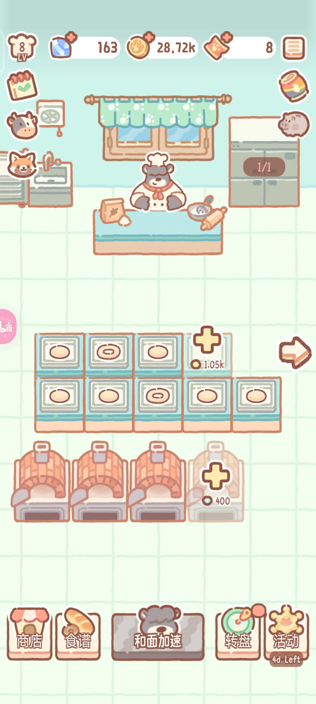 💡游戏创意:不错(有面包合成,面包店和外卖售卖,以及有房间摆放人物和家具,有主店和活动的分店