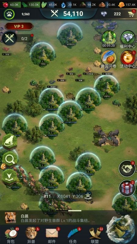 重心放在庞大的养成框架上,而联盟互动生态仅起辅助留存作用,盘根交织的养成线及各式机制设定,持续放大资源的投入需求,物资资源就有苹果、 蜂蜜、水源、树叶、绿草等7种,而其所关联建筑又划分成:仓储、采集两类,且可建造4个,加上战斗生产方面上的兽群幼崽、兵种召集、恢复、城防等建筑,此外还有深不见底的基因研究...