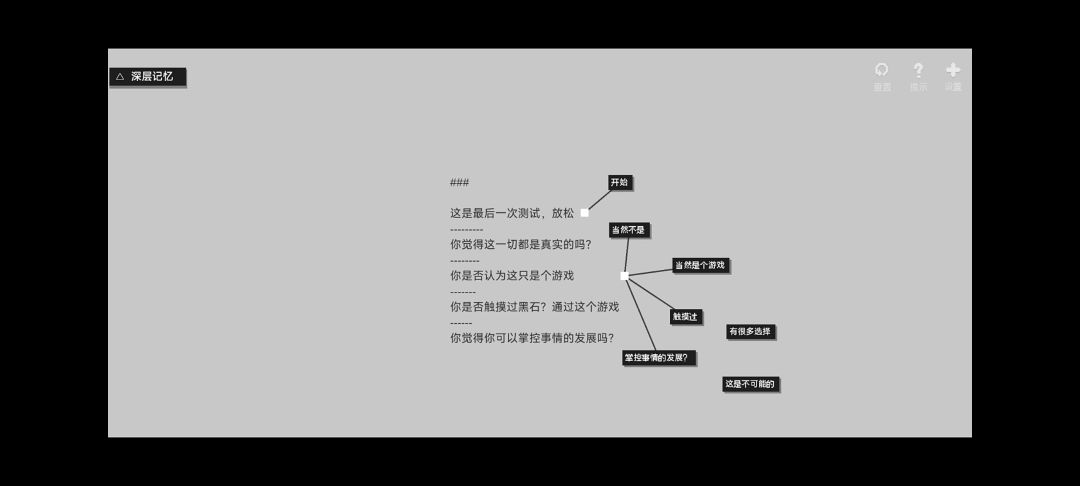 与其他部分文字游戏有区别的是,隔绝于游戏内的解密之外,有专属于玩家的选择题目。