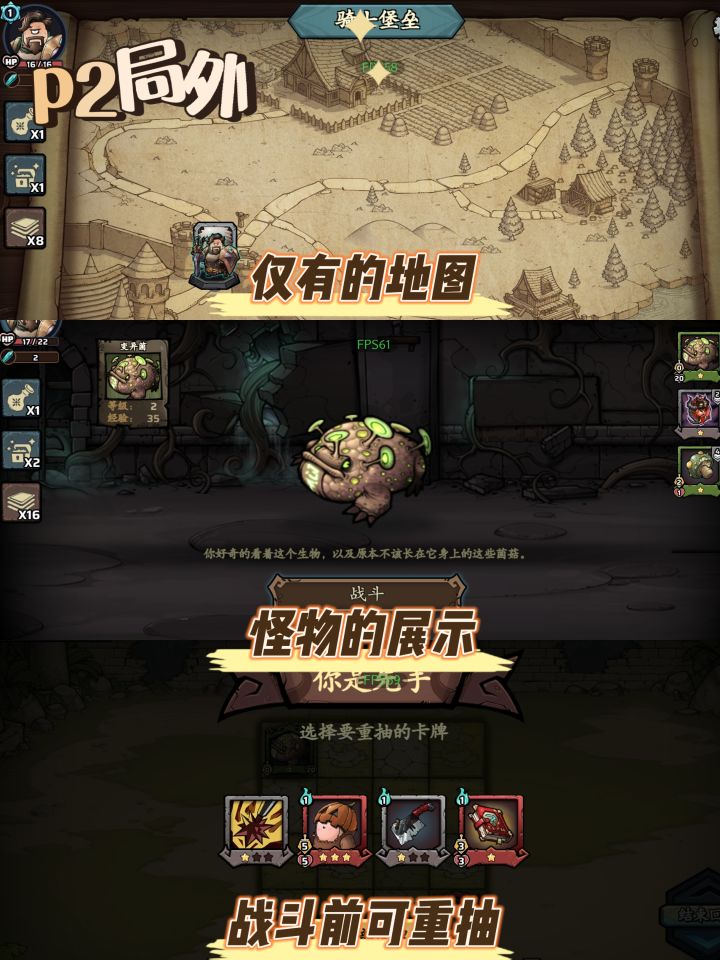 战斗地图高度重复,对付敌人优先策略,放置随从进行包围,探索完毕无功而返。