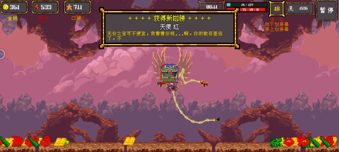 然后然后,它最重要的地方来了,还记得开头的黑屏吗?‘这是一个陶侃讽刺游戏,请勿对号入座’,这句话不说还好,一说就让我感觉不对劲,太不对劲了,我寻思它还能讽刺啥啊,等我慢慢玩的时候,游戏语音响起的时候,我才发现,它讽刺的是社会,是社会上的,形形色色的人,良秀不齐的社现象,宝箱从头顶出现的时候,背景开始不断的扭曲,然后我们的怪出现了,但是怪的目标是我们,我们的权利、金钱、名声,它们是贪得无厌的,我们也是,我们想要通关,想要更高的分数,我们开始慢慢的变成👹,长出更多的手,为了提升伤害,我们也开始追求名利...我们被它同化了...哇,细思极恐