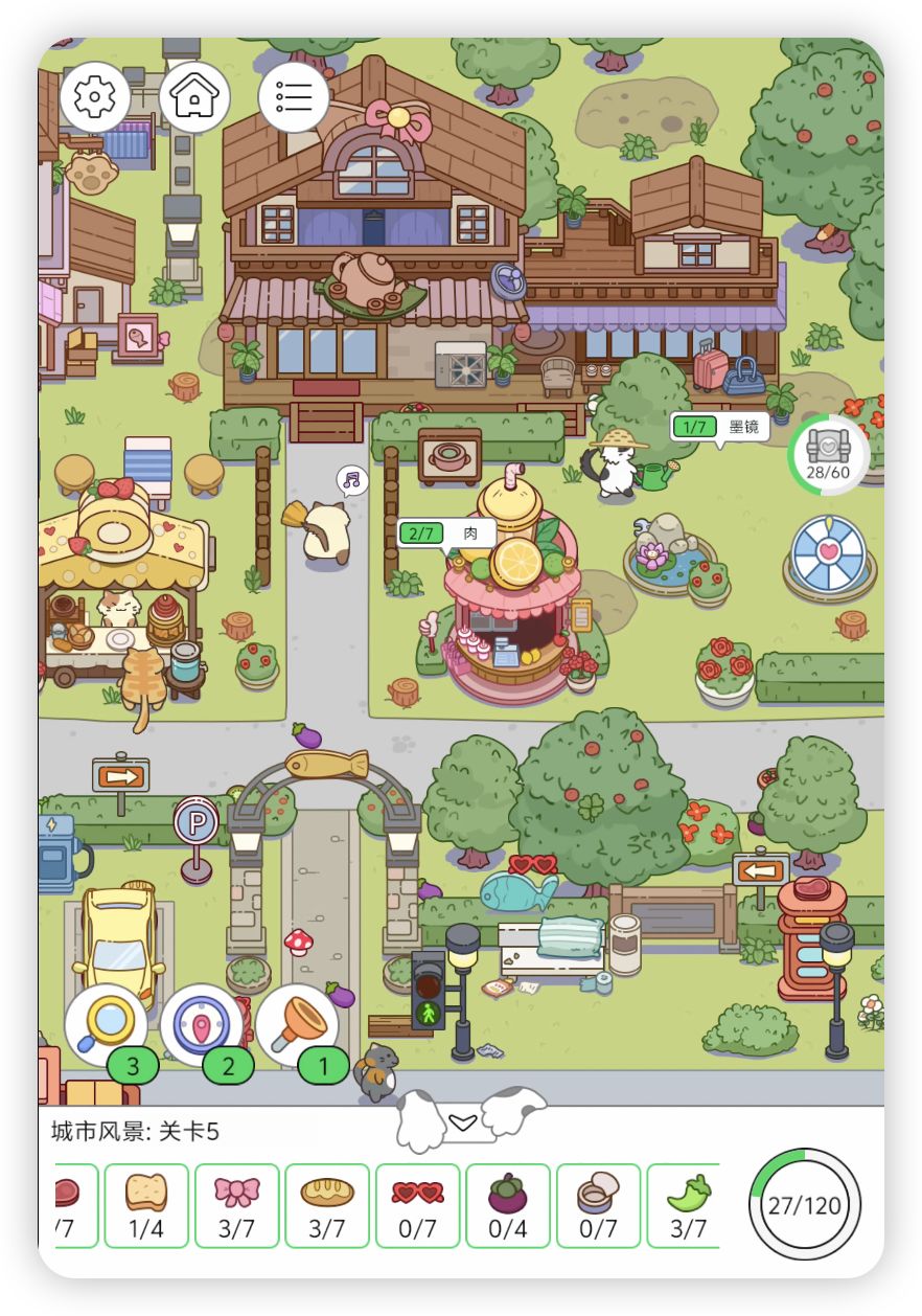 不氪金就能玩的很愉快,大多时候我还是愿意靠自己慢慢找的,找累了就看看猫咪们都在干嘛。实在是需要用道具了就去看广告,广告时长还是可以接受的,通常半分钟左右,利用这个间隙放松一下眼睛。