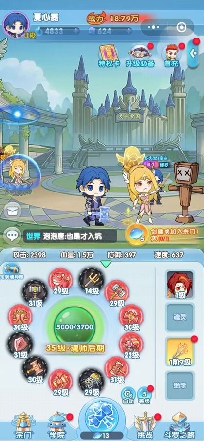 游戏画风卡通呆萌的类型,而且与斗罗联动为主题,游戏中都是斗罗的人物跟元素,算是个可以当副游的小游戏,体量小,但内容很多,在tap的ios端可以不用下载,直接游玩,