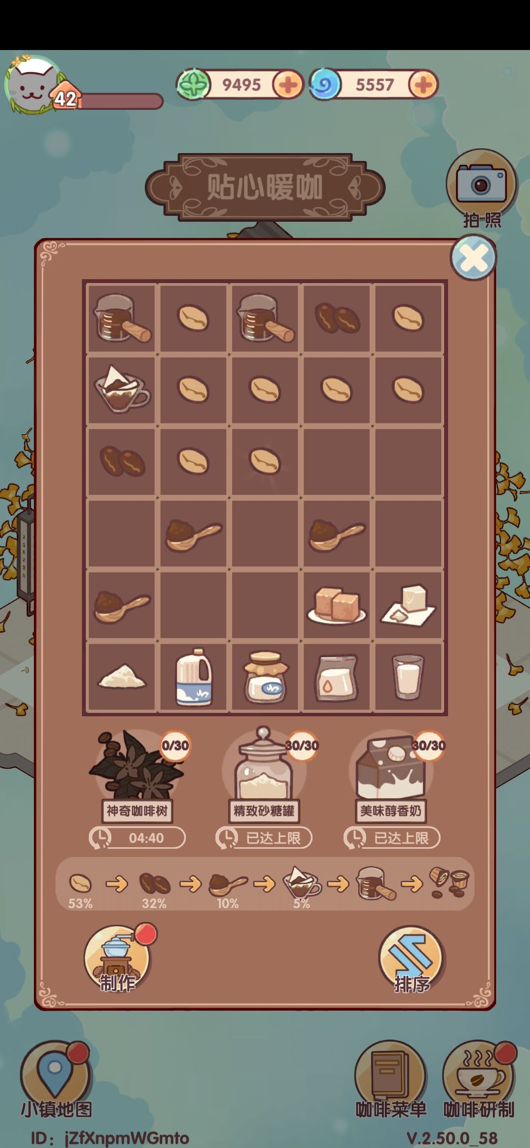 然后又去试了制作咖啡,从一开始的只有咖啡豆变成了概率出,现在差不多一组下来能做1~2杯咖啡