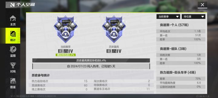 入坑4天(图片里是5天,因为今天上线截了个图还没玩),纯0氪,高强度玩了17个小时,目前段位巨星4,也玩过极品飞车ol和那个游戏5,在此只是谈谈我的看法,仅供参考。(叠甲)