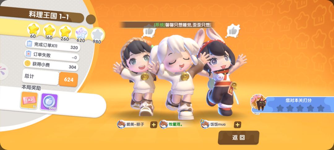 从游戏的内容展现来看,也基本做到了对胡闹厨房的一比一还原,无论是最简单的烹饪道具,灭火器等基础设定,还是传送带、堵路烟火、特殊地形地图的设定等,都还原出了厨房玩法的精髓,看似忙碌异常、屏幕乱跑,实则“井井有条”、“主次分明”,各种地形和道具的使用或干扰,有效的保持了游戏的新鲜感和挑战性,玩完一关还期待着下一关的到来,而且五星等级对比胡闹厨房的三星而言也更具挑战性,我和小伙伴第一次进图往往都只能二三星通关。