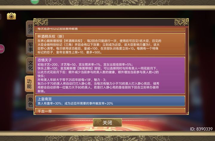 ✍🏻建议:在设置界面加一个方便后宫玩家用的一键更改妃子的份位和每月只显示生孩子数量等