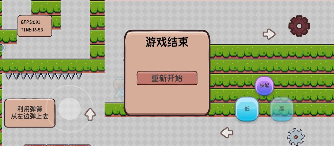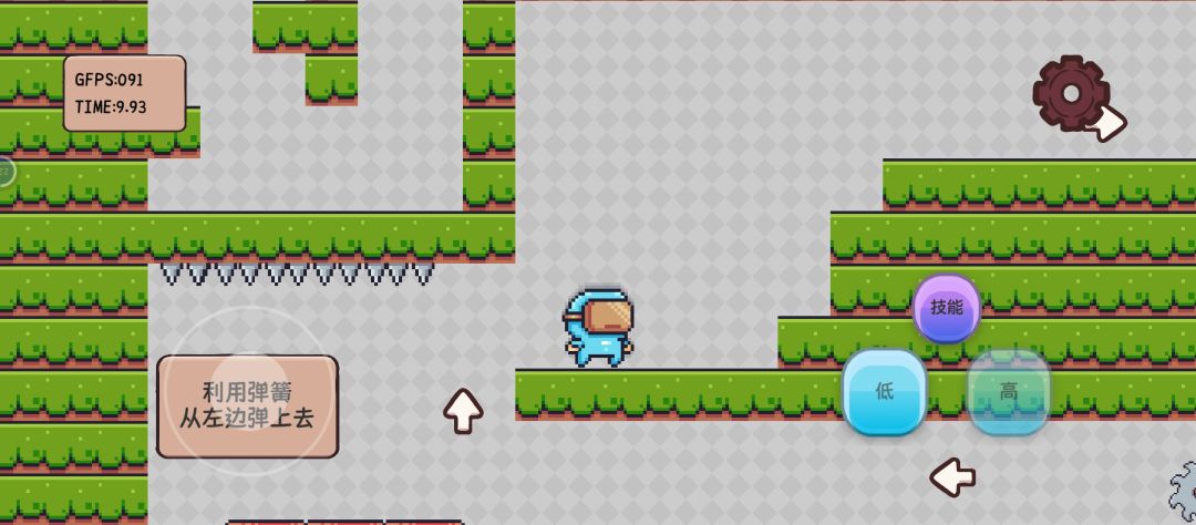 图一:最右边的弹簧是假的,要靠中间的弹簧弹。被速度太快死在上面的刺上了。