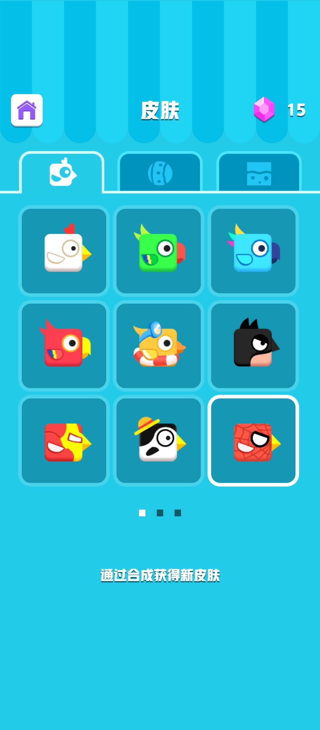 主界面可以通过合成获得皮肤,考验一点反应