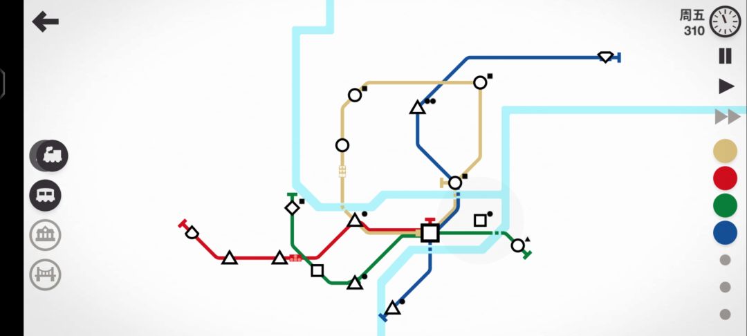同样不得而知设计者是否进行过其他设计考量。不同图形,并没有标记出不同站点的区别,也没有特殊意义而只是随机生成,仿佛也只是为了提高难度即设计者所说的“挑战进阶”而设置,配合上随机性,会造成实际游戏中相当多不合理现象。