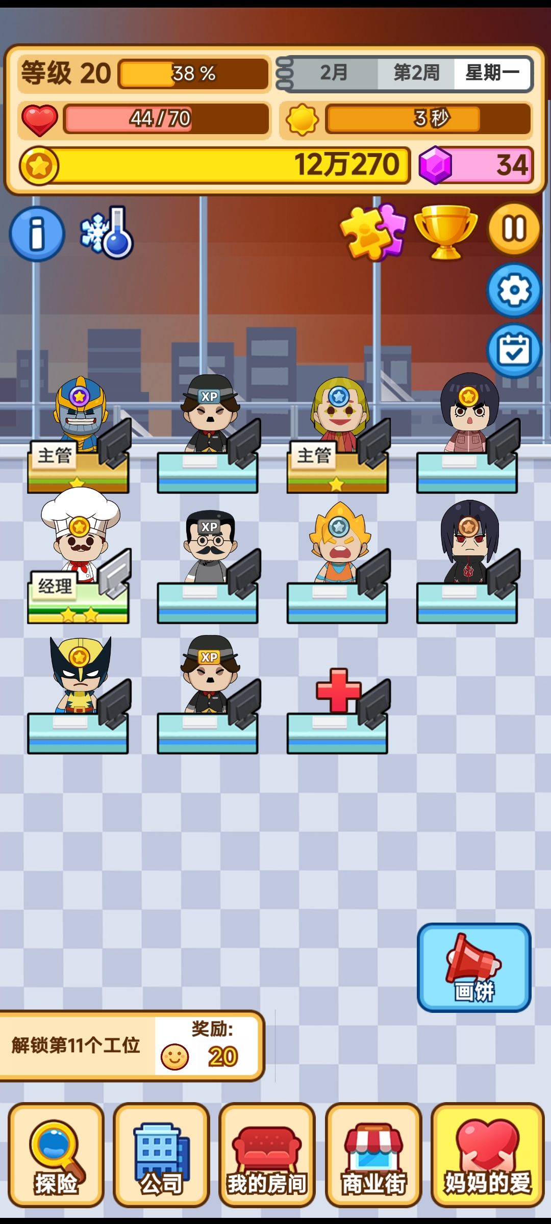这款游戏还挺好玩的,一开始不太懂玩,但是越玩越上头哈哈哈,还可以解锁不同特性的角色,增加了游戏的可玩性,很有趣的一款运营类游戏,界面也非常好看!推荐玩玩~😆😆😆