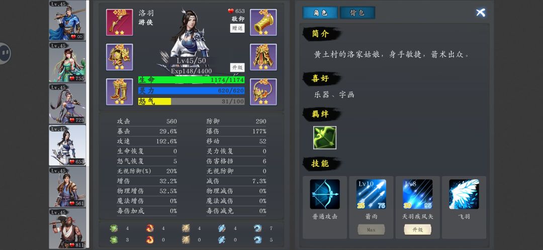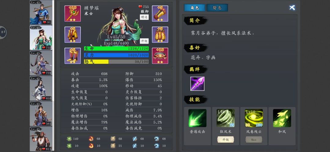 再说说套装搭配吧,个人推荐梦瑶法师套堆法伤,主角和洛羽赤金套堆攻速,和别人不一样的是,啸天没养,不只是因为武器尴尬,还因为技能只有一个和攻速相关,同理,凛月技能也是一样,凛月杨成用赤金套堆暴击,毕竟他们是刺客呀,牛栏山用的青石套,大家多研究青石套,感觉更契合牛栏山,和尚不挑装备,全红装就行,堆法伤或者雷属性都行,完全是因为套装不好刷,多余的套装都拿去洗属性了。装备属性方面,除了上面提到人物相关的,最通用的属性就是攻击和增伤,无脑套用。人物方面,只要养主角梦瑶洛羽和尚就够了,基本开场秒大半,实际上除了最后一关圣主,和前期开新副本刷装备的时候,全程都是自动过的。