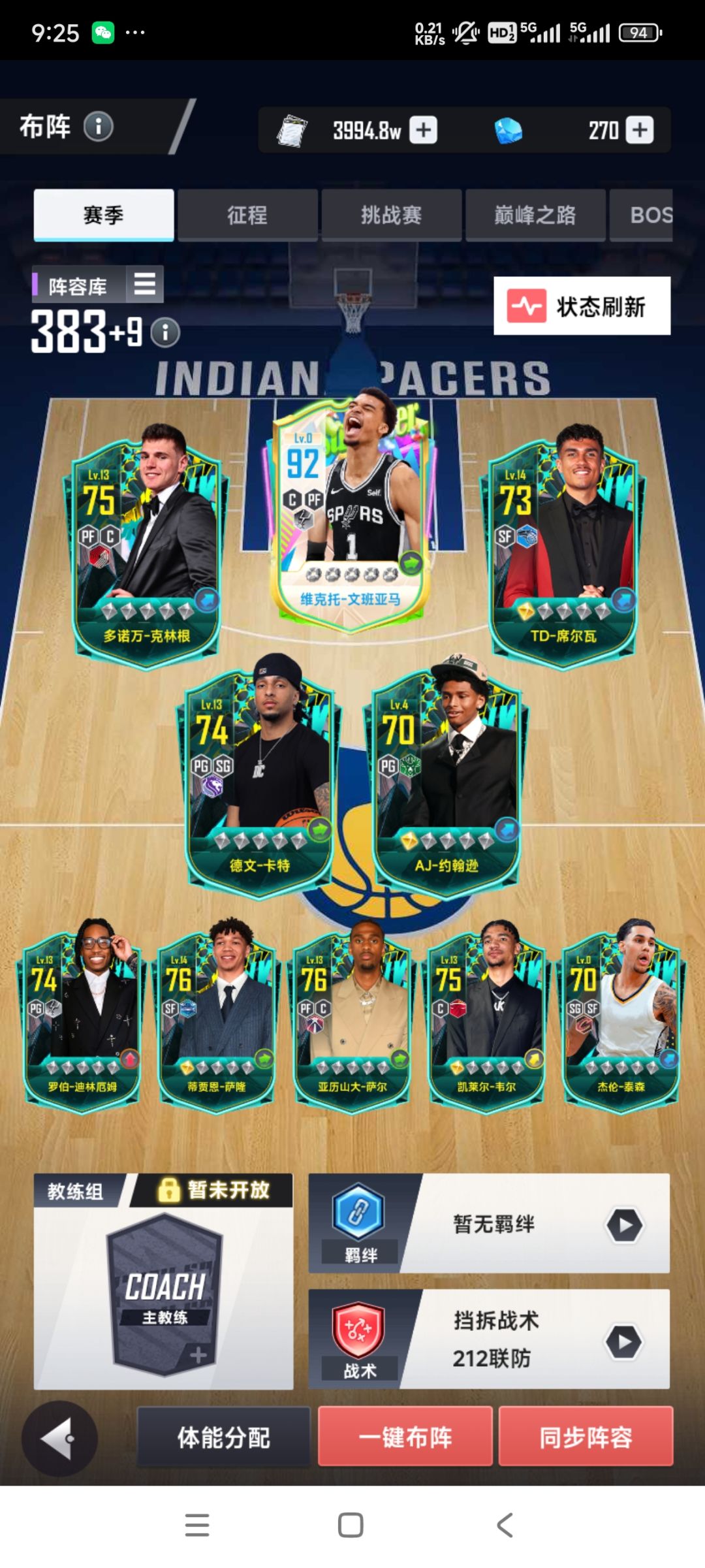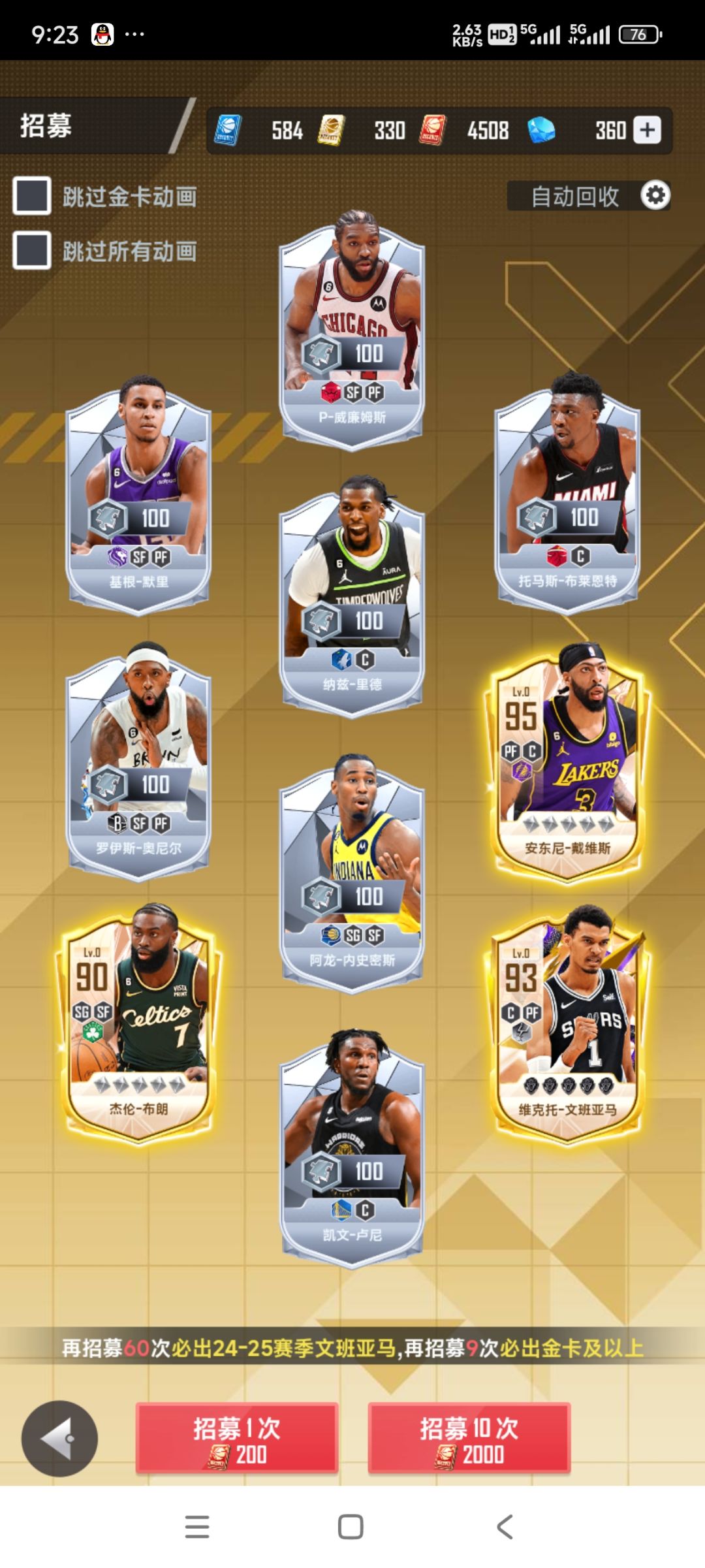 和同学一起玩的。现在玩了两个月也差不多到头了。这个游戏抽卡很多,活动也很多,但很多活动,零氪党硬肝是肝不到最高奖励的,也就能肝到点自选黄金球员卡,我上上次球队保卫战活动,肝了四张自选卡,给我的文班直接堆到五星去了。但上次和这这次的球队保卫战我都肝不动了,就混点铂金券。夏日抽卡活动时间很长,但我是真脸黑啊,抽到现在几个月了才单出一张夏日铂金,剩下的全是保底出的。