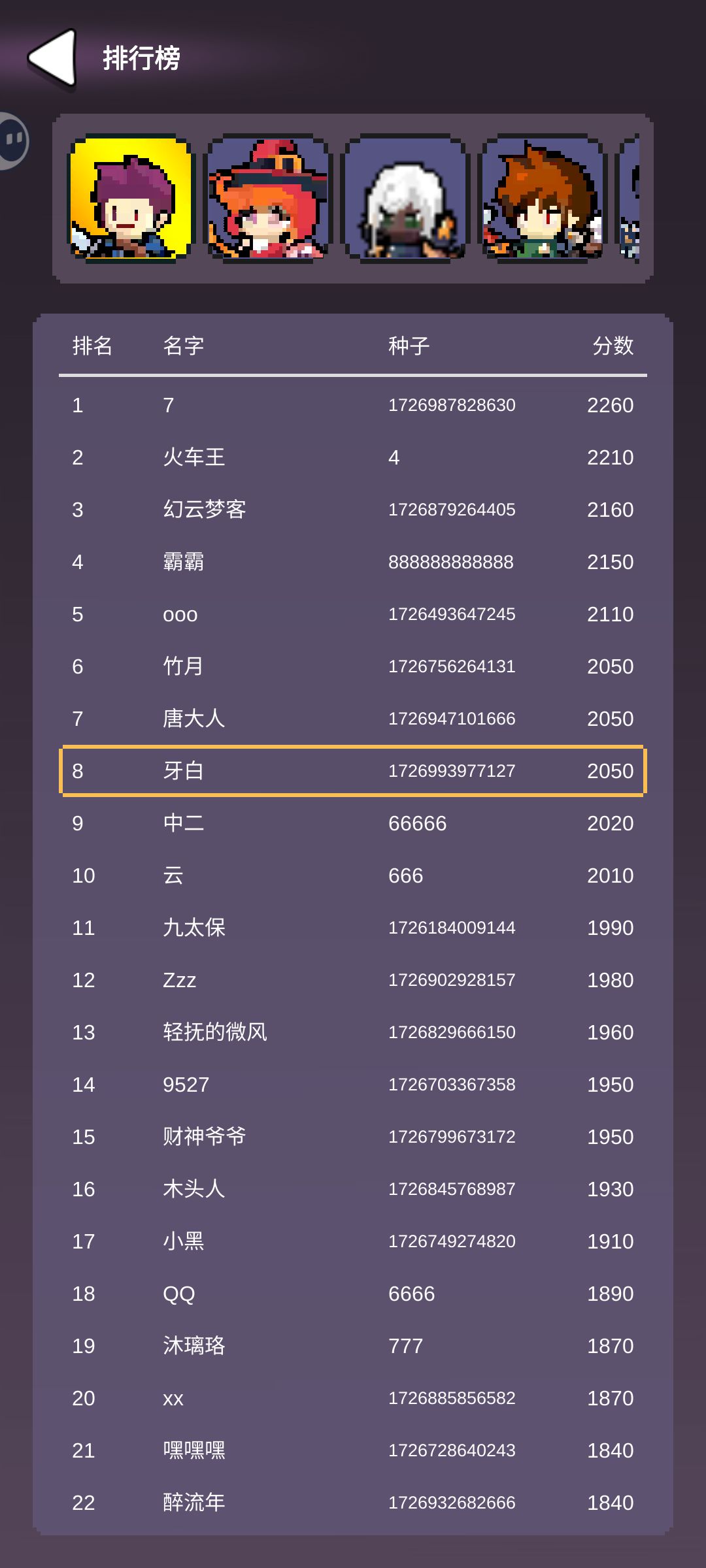职业众多,前期没金币解锁,初始只有个剑士能用,自带加一火车长度,这也是我用来通关1-6难度的角色,积分榜还能排个第八。感觉无论是战士还是法师,特点都不是那么明显,就是自带不同护身符的区别。护身符在游戏里还能升级和更换,就更一般了,特点为什么不做成固定属性。