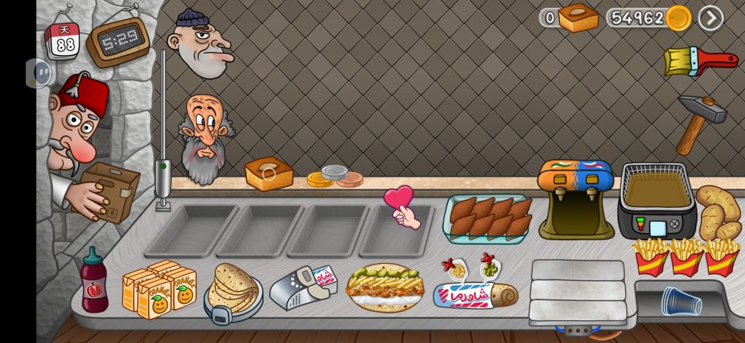烤架一定不要先点,非常影响节奏,上面这些都可以等刷够钱再点,先升番薯橙汁,然后吐饼机 自动包装 配方(加料点一下)切/炸土豆就行,刷子升级加两块钱和客流,锤子提升同时在店人数,但手速跟得上的话完全做得过来