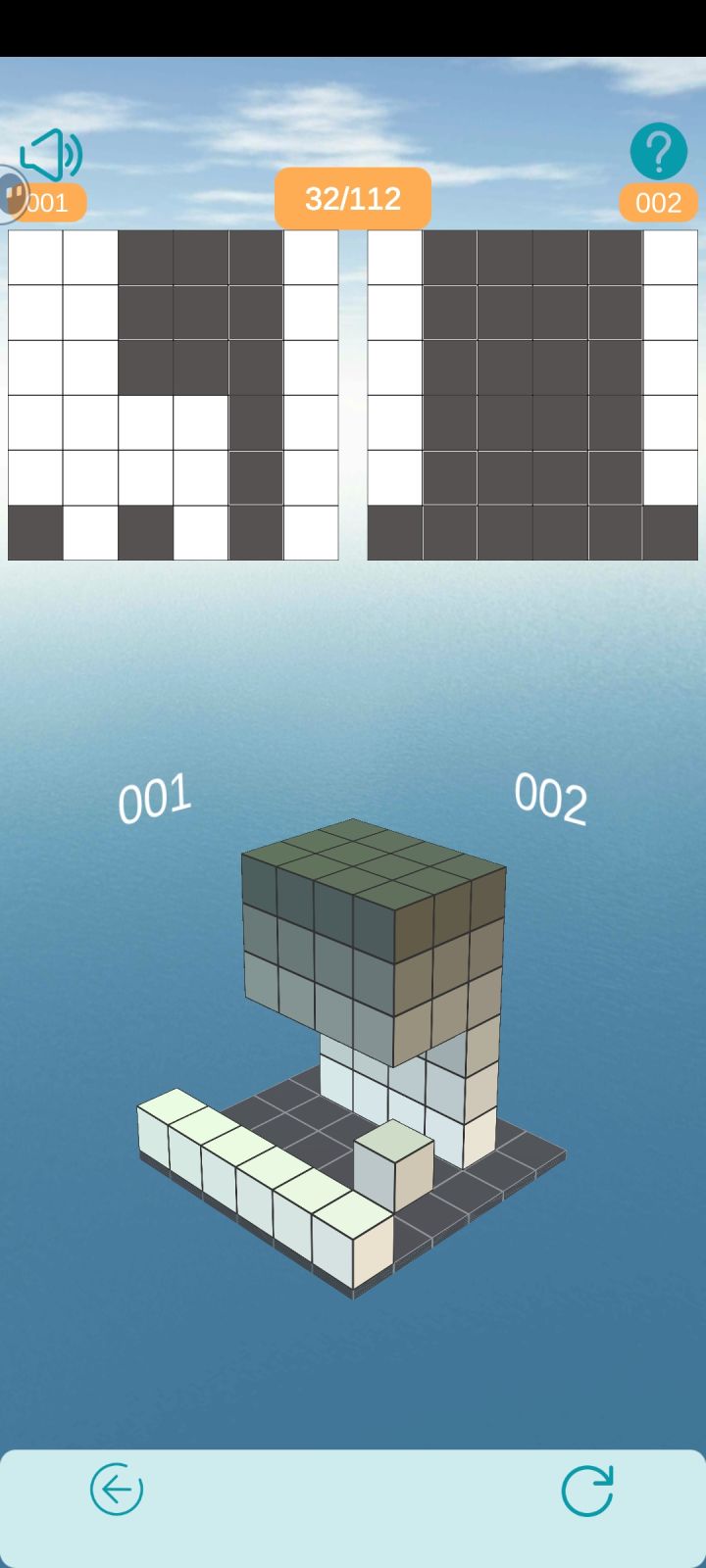 玩法简单,一心两心难度都有,都比较简单吧。缺点:1.每层颜色在一起才明显,分开就不明显了,你不知道哪个色是哪一层的。2.不同颜色代表不同层,在开局并未告知,以至于出现下面情况(图一),最下面单的一个其实是第二层的,但从视觉上以及占的格子是第一层的位置,我画一直报错,还以为是bug,其实是色层不一样。我觉得可以试试看在二星里添加一些字的形状,可能会增加去趣味和难度?毕竟已经有数字的