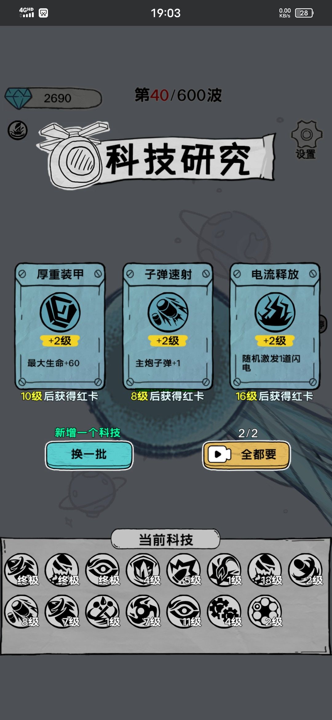 建议添加一个功能【升级不中断游戏,技能点留着,等玩家点击再进行选择或者随机自主选择】这样就不用打断游戏进行,不然像我这关600波,打到瞌睡了还要我一个一个点技能