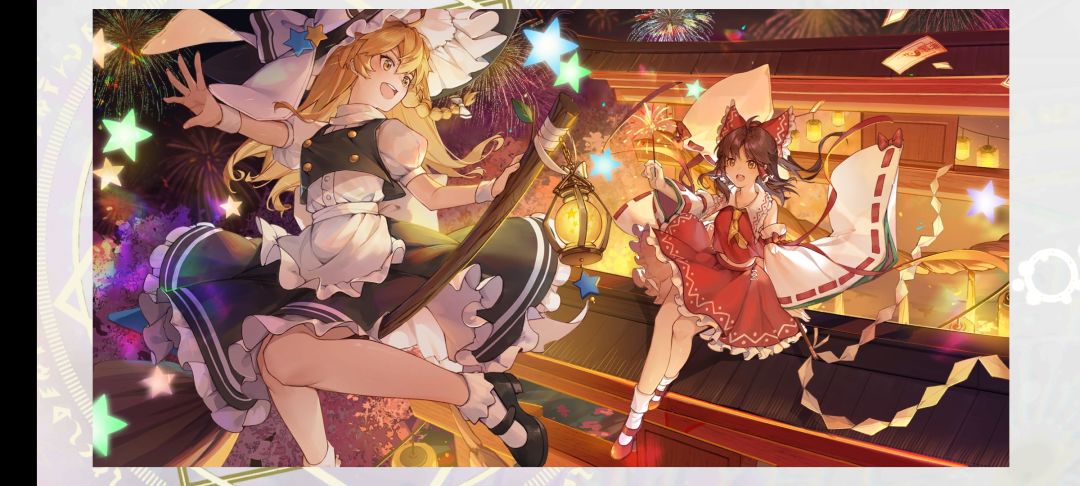 2.美工非常好,虽然大部分都是2d,但是画师显然是发力的,不论等级高低,都超级好看(比较喜欢灵梦,附上两张游戏中插画供参考),而且音乐也很有代表性,好听