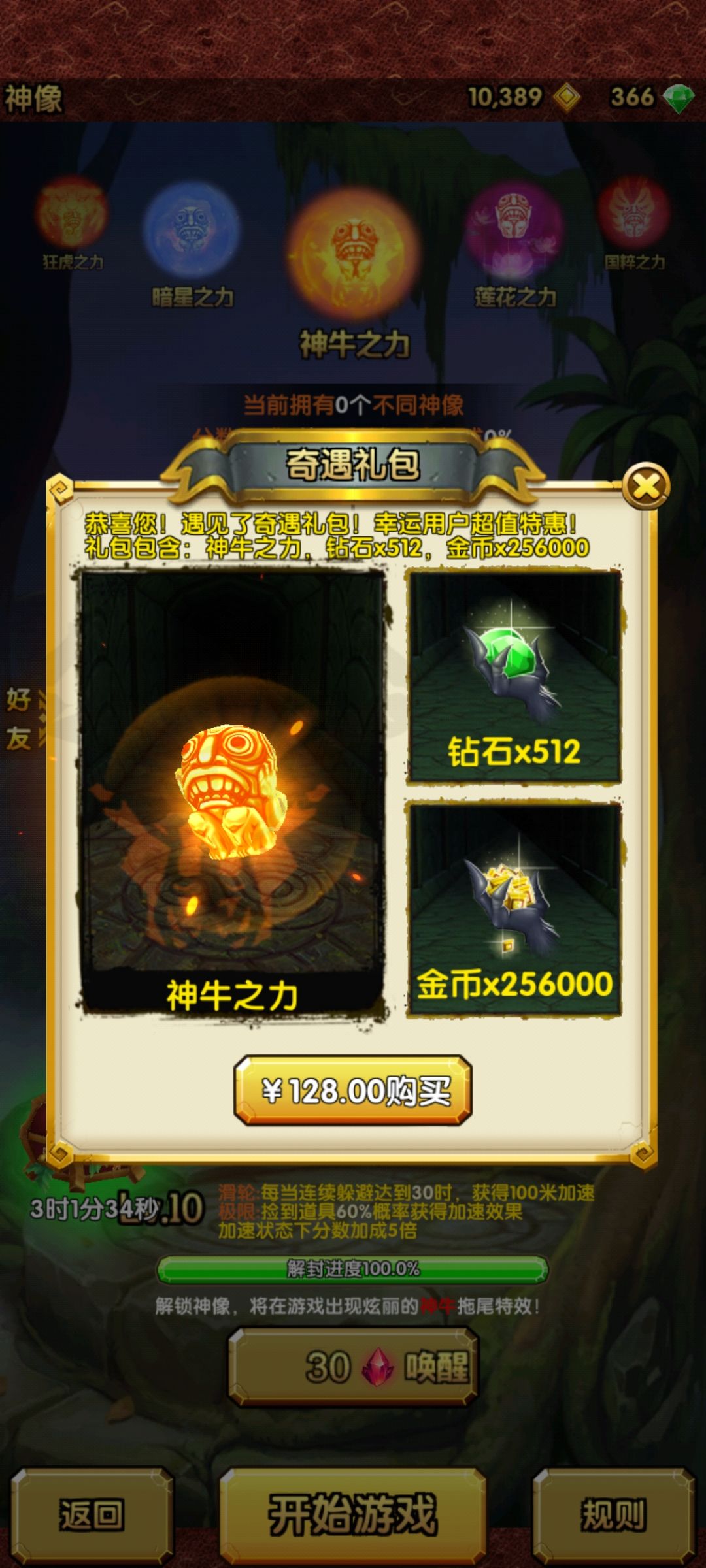 呃,可玩性还是有的,日常收集角色啥的,钻石宝箱爆率也高了。但是还是有不少问题的:关于金币解锁神像然后蹦出30能量唤醒为什么我不如直接花128买下?然后就是角色博尔特消失?一些角色装扮可以免费获得(点击就能直接获得)而不是bug?