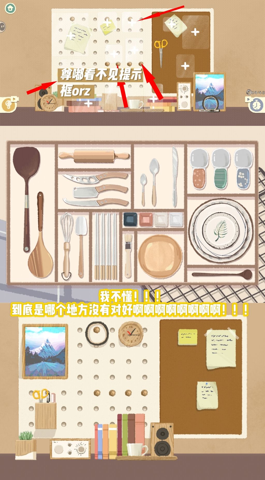 〔Ⅲ〕玩法:而且部分物品的摆放有些摸不着头脑,a物品可以放这里也可以放那里,那么无奖竞猜,a物品应该放在哪里?321请作答!!!(配合上游戏限时机制带给我的感觉就是这样,火急火燎的答多选题૮₍ɵ̷﹏ɵ̷̥̥᷅₎ა)