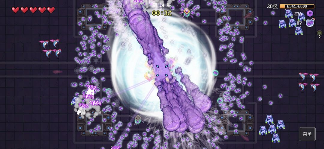 用【大同】完成难度一后解锁【幽影】👻,幽影哪怕通过难度五和无尽35波(无论多少波)都轻轻松松,因为只要了解幽影的机制,他就是完全无敌无脑的。装配部件个数+护盾,受伤时会有无敌时间,这时候身体穿过的敌人直接死,且持有部件越多无敌效果越长。如果慎重可以带回血回盾磁铁闪避翅膀,实际上乱带也没啥。就是前期需要自己操作,一滴血时候只能躲。