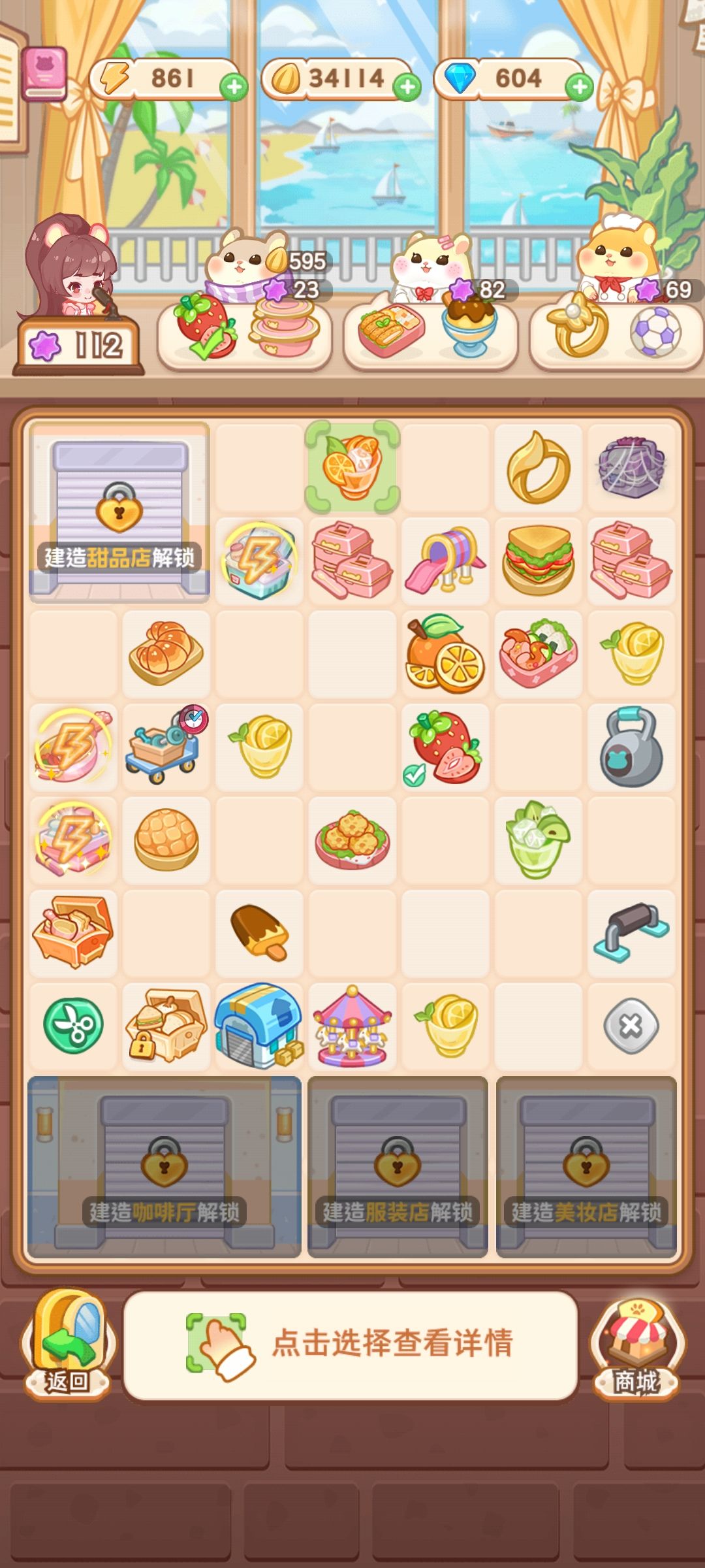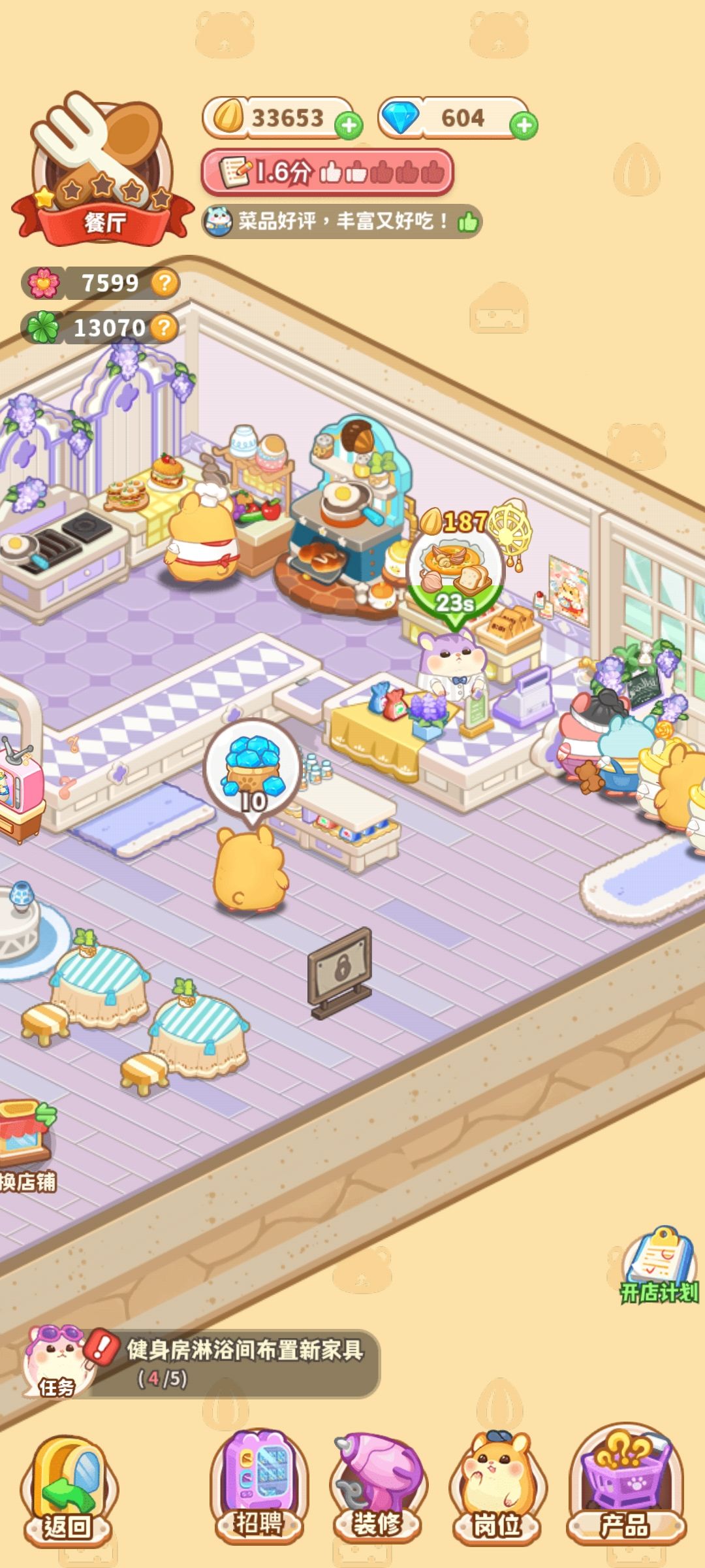 首先画风我很喜欢 鼠鼠特效音特别可爱 每个店铺还有随机对话和礼物掉落这个很好