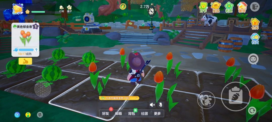 还有个玩法也蛮熟悉又温馨的:农场,草草体验到17级,种田玩家一定会爱,优化做得还可以,还有拓展的钓鱼、家内装饰等模块,玩法丰富性确有进步,但是随之而来的就是铺天盖地的抽卡。